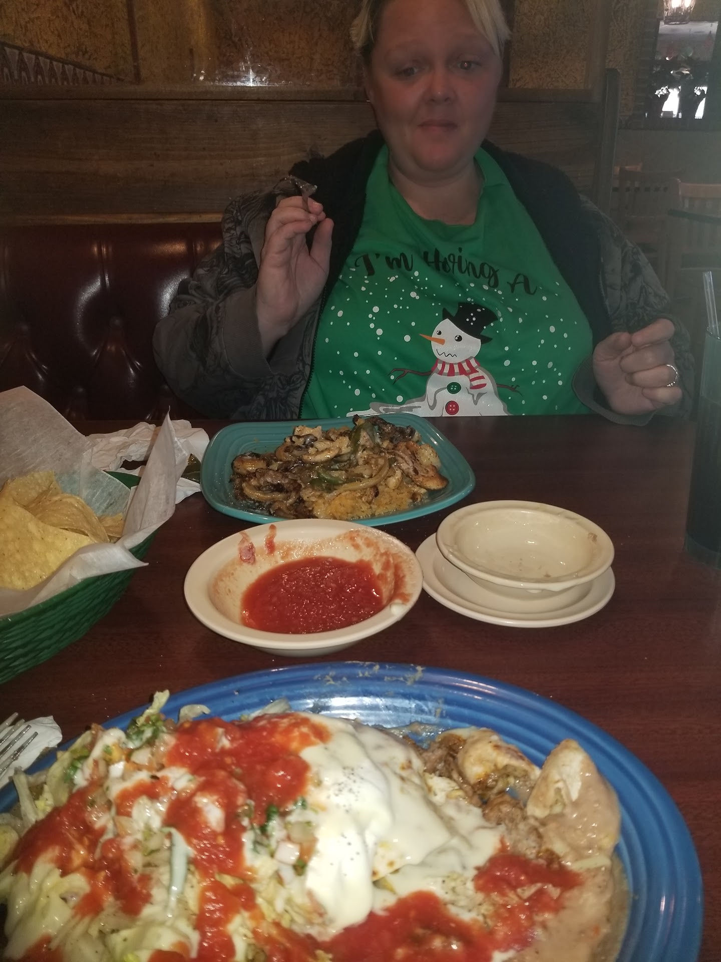 My Husband and I stopped at Los Portales last night on our way home after a long day. We were both starving and ready to eat. We are new to the area and this is the first Mexican Restaurant we have been to since moving here. We got the Enchiladas Suizas and the Fajitas for one. We'll we ate and came home and went to bed. It's now 8:41 the next morning and We are paying for it. We are both extremely sick with stomach cramps and food poisoning symptoms. As I type this, I'm regretting every bite. It's very unfortunate because the food was okay. I will say mine was very good. However, the Fajitas was honestly the worst Fajitas we have ever had at a resturaunt. I hate having to say that but it's the truth. That's how bad it was. Not enough veggies. Overcooked meat. No seasoning. They didn't add olive oil or something when they cooked it It was dry and definitely not what you would expect. The 2 tortillas were way to big for Fajitas and over microwaved. Stuck together and dried out and we couldn't get them apart. "Maybe"... it was a bad night for the cook on the Fajitas side of things and as far as being very sick , that was the first thing I'd ate all day. So I know that's what made me sick when I woke up in the middle of the night. Very disappointed. We spent $20 a person. After drinks and a tip. We most likely won't return after getting very sick. Which sucks. š it's very irritating to spend that kind of money on only 2 dinner plates and get so sick and be so...