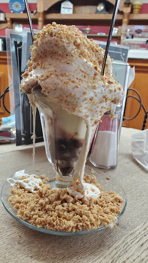 Read more10yrs ago this place was amazing! Stopped in for a quick ice cream with my kids the other day and it definitely was not quick. Love the old timey atmosphere but the order process definitely should be reevaluated. Got in line to order at the counter thinking it would be quicker than getting a table, ended up taking 30mins just to order. As you order each item, they make it but they're not in any hurry. And with 2 small kids, 30mins is a LONG time. Each order took around 7-10mins. Only 1 girl working tables, 1 working counter. And no organized line so people were jumping up to order ahead of others who had been waiting. Great ice cream and love their Bubbles! Great option if you like salty and sweet together. Lots of flavor variety options as well. Have not tried their hot food yet. Staff was busy so I kinda get it, but felt they could have been friendlier. Front of house where counter is is very 50s nostalgic! But the dining area seemed like an after thought- just cheap tables surrounded by storage boxes and shelves against cinder block walls. And for a 50s-esque local owned ice cream spot, the prices are pretty low compared to others I've been to. 25$ for 4 ice cream, 3 bottled drinks,...