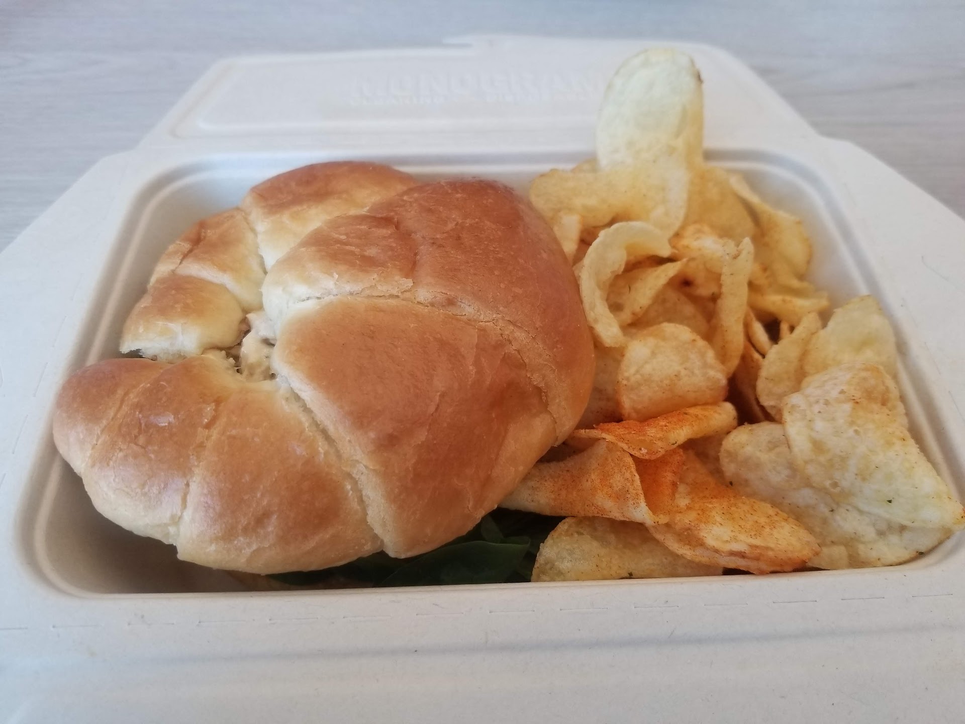 The food was amazing. The Chicken salad had a great taste to it and the soft flakey croissant paired perfectly. The meat in the chicken salad was also juicy. The cafe chips were thick, fresh, crunch, and seasoned well.