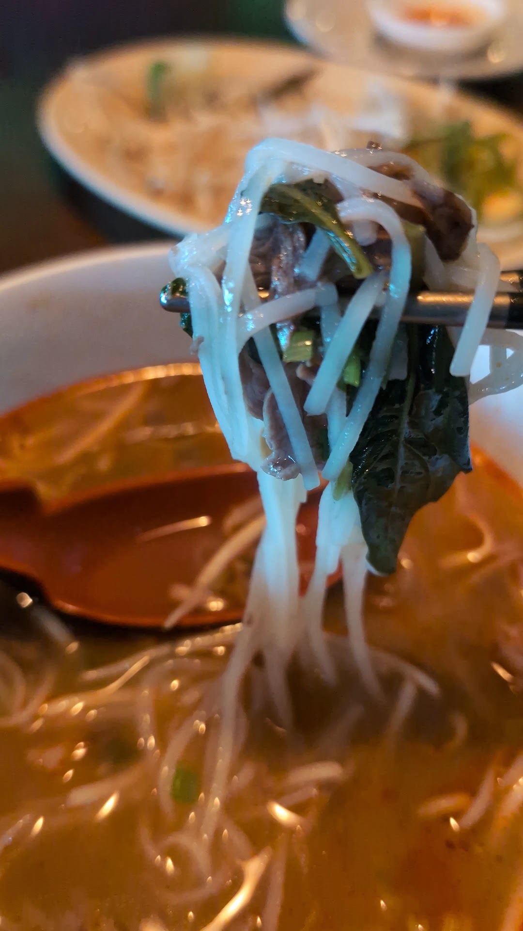 Ā Ā Ā Read moreThe dining area is nice and serene. Love the calming music. My first round of egg rolls were fabulous and the Kiwi Tea some of the best ever. The Pho itself was terrible but served eloquently for the price of the bowl there was flavorless meat and what felt like plant based noodles. Bland and boring. After I added some of what I found out was homemade chili oil to the mix. It spiced it up decent enough to eat. Right towards the end of my meal the lady at the register started plunging the sink about 15 feet away from me. Which that, combined with slurping broth from a bowl and looking at the side of a spotty, dirty water glass, made me instantly put down my sticks and pay for my meal and leave. The people are great but no way would I ever come here again nor do I recommend it. The prices are also...