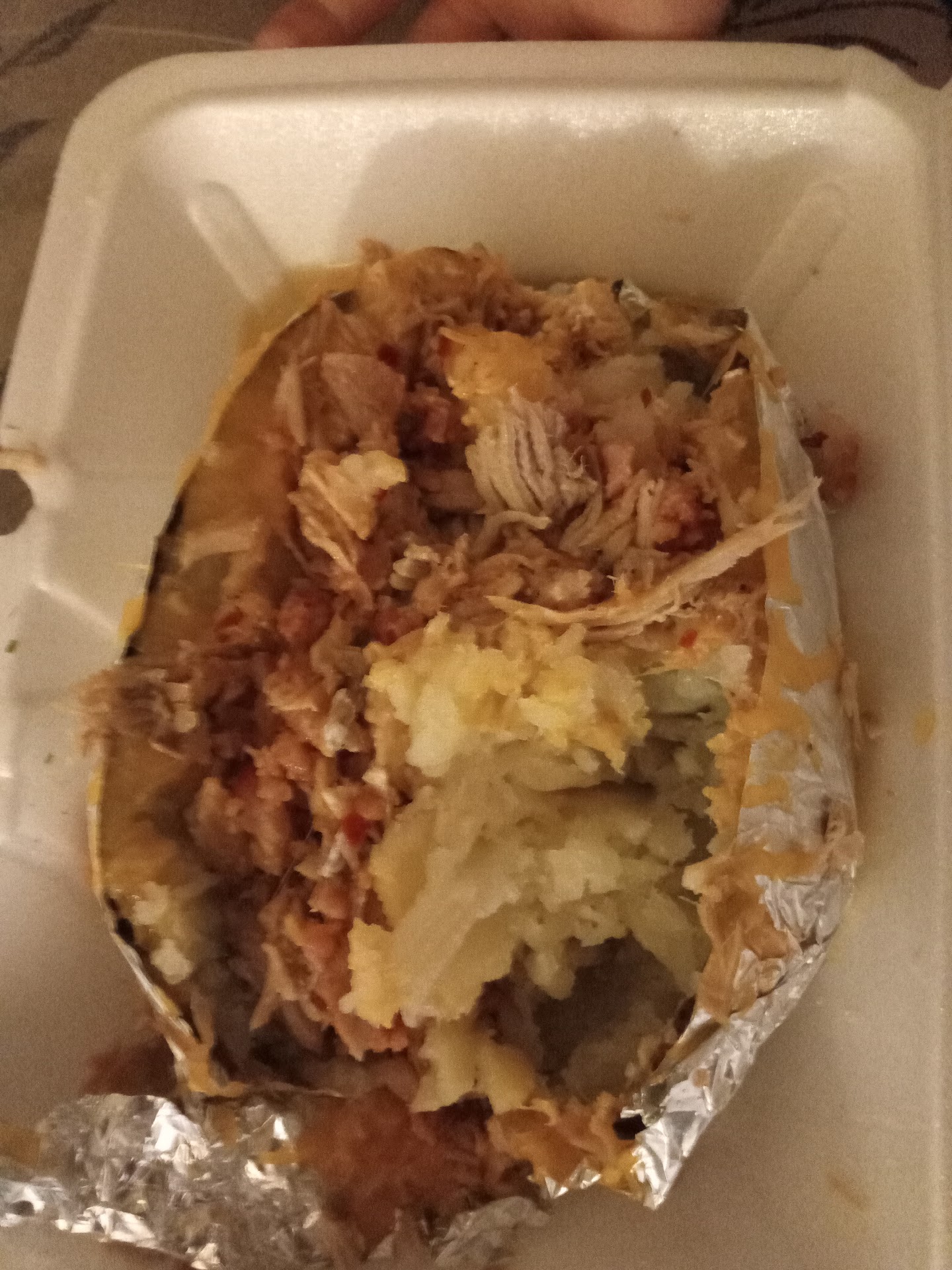 Read moreFor those that are not from the area, this is a drive through not a dine in. We were passing through read the reviews deciding to stop and try the BBQ. We were not let led a'stray. Excellent BBQ - I had the nacho's loaded with pork, cheese, sour cream, jalapeños and corn chips, my husband had a pulled pork sandwich. The BBQ sauce was spicy and tangy paired perfectly with the pulled pork. We also tried a fried apple pie, I have had better fried pies but it was still good. The employees were very nice, helpful with a great sense of humor. (Note if you are traveling with pets, there was a sign in the window that they sale...