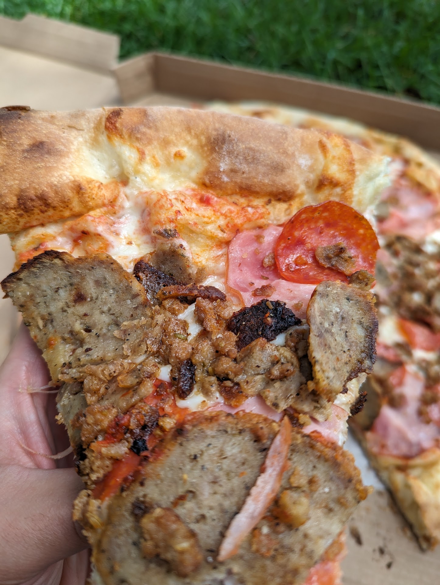 The meatball parm to me was a bit better. The meatballs were sliced up on top and had good flavor. Great portion of cheese and sauce, and overall flavor was a step above the margherita. I would recommend this pizza if you head here.