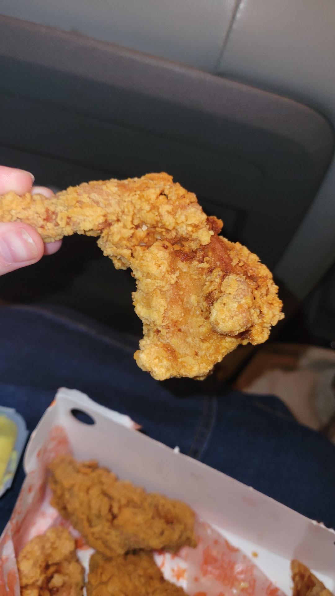 Read moreI know service usually sucks anywhere when its close to closing but this location takes it to a whole different level. Was in line at 9:20pm, asked for blackened strips.. male voice says, there aren't anymore for the night.. so i asked for mild strips and was told the same thing ... so i said well, what can i have? And got No response.. i sat there for about 5 mins, by now, there are 5 cars behind me now and a female request my order as if I'm a different customer.. i order 2 3pc wing dinner and proceed to window.. i let the female with black and red braids (she had no name badge on) know that i was the same customer they left on hold. She looks suprised, claims it was another person with the headset blah blah blah.. then tells me they only have 5 spicy wings 😒 i ask her what she plan to serve the 5 cars behind me?? She says the guys in the kitchen dont follow the rules as far as when they stop cooking. well, as a customer, thats not my problem..i tell her to create 2 meals so i can go.. i paid for 2 3pc wing dinners but left with 3 pc leg dinners.. (Shrink) she was as nice as she could be since she wasn't expecting me to be the same customer..the service at this location is just...