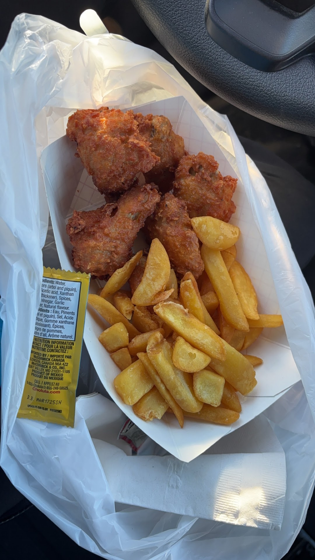 The wings and chicken tenders you could tell were purchased from Gordon’s and fried in old grease and pre used batter as they were a dark color and were not as advertised as the “wing dings” I thought I was getting instead I was served some jumbo wings.