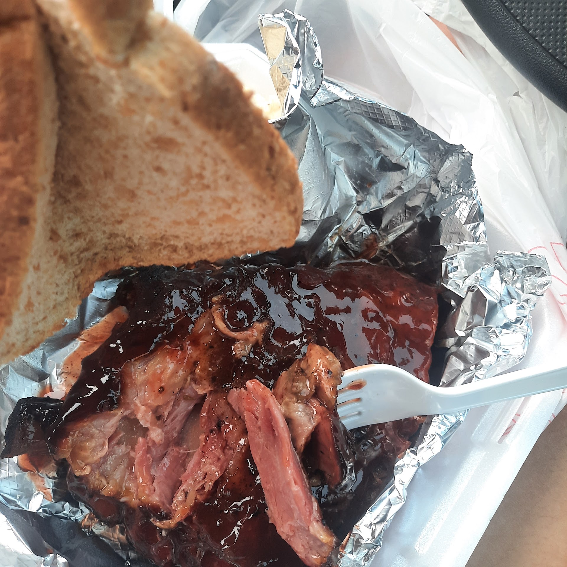 Read moreI am from out of town and on a whim drove by this BBQ place on way to walk in neighboring park. After my walk, I decided to try it for dinner. It was past dinner hour and I decided to pull up. They only had the meat, coleslaw and potato salad. If I had my choice it would have been green beans and maybe some Mac, but I went with the ribs. OMG these ribs had depth, smoke and sweet and spicy and not too thick sause, tender meat that fell apart with plastic fork. The back burner sides were excellent, especially the slaw. All washed down with perfect homemade lemonade where you still can get a few grains of sugar at the end of it. I totally would have went for a 2nd walk, until I wasn't full anymore, just to go back and eat more of those ribs... it was so good. Go there, even with slim Pickens for showing up late, it was all better than great. Love when you find gold on whim. I...