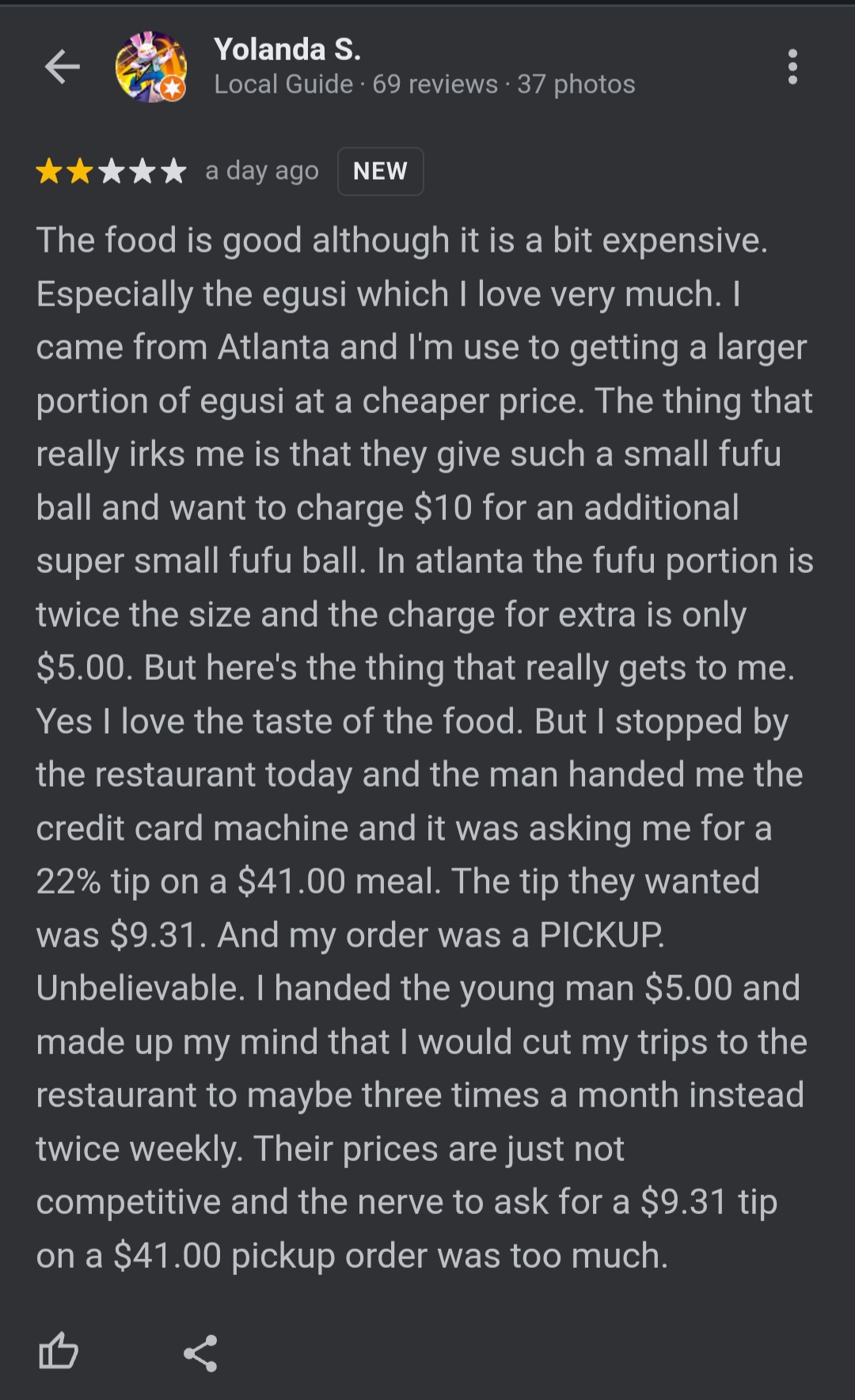 Read moreWhen I first moved to MS I was looking for a great restaurant to get amazing oxtails. I’ve multiple places until I tried this place some time over the summer and the plate portions were insane for the price! Loved it. But every time I would go back the portions would be smaller and the prices would be the same. I went in the other day and got the oxtail Mac and cheese meal which also comes with cabbage, I got one oxtail for $20. The meal was absolutely to die for with flavoring and I get inflation completely, but the if the portions are going to be smaller the prices should go down as well. I sat at the bar for 15 minutes with just a menu in front of me nobody said anything until I stared them down. They used to automatically bring water and I didn’t even get a water. I was the only person in there you would think the service would’ve been immaculate since they were just standing there. Nobody came back asked if I needed anything. I had to ask for a refill on my water. The serving staff is slow BUT they dress very nice. The establishment is very clean and well organized. My food came out fairly quickly but the only thing hot was my Mac and cheese everything else was room temperature. I do recommend to eat here but the pricing will not match the amount of...