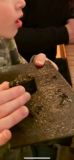 Not the best photos but added for visual! Caviar sample for son. Big eye nigiri (top 1% provided solely to...