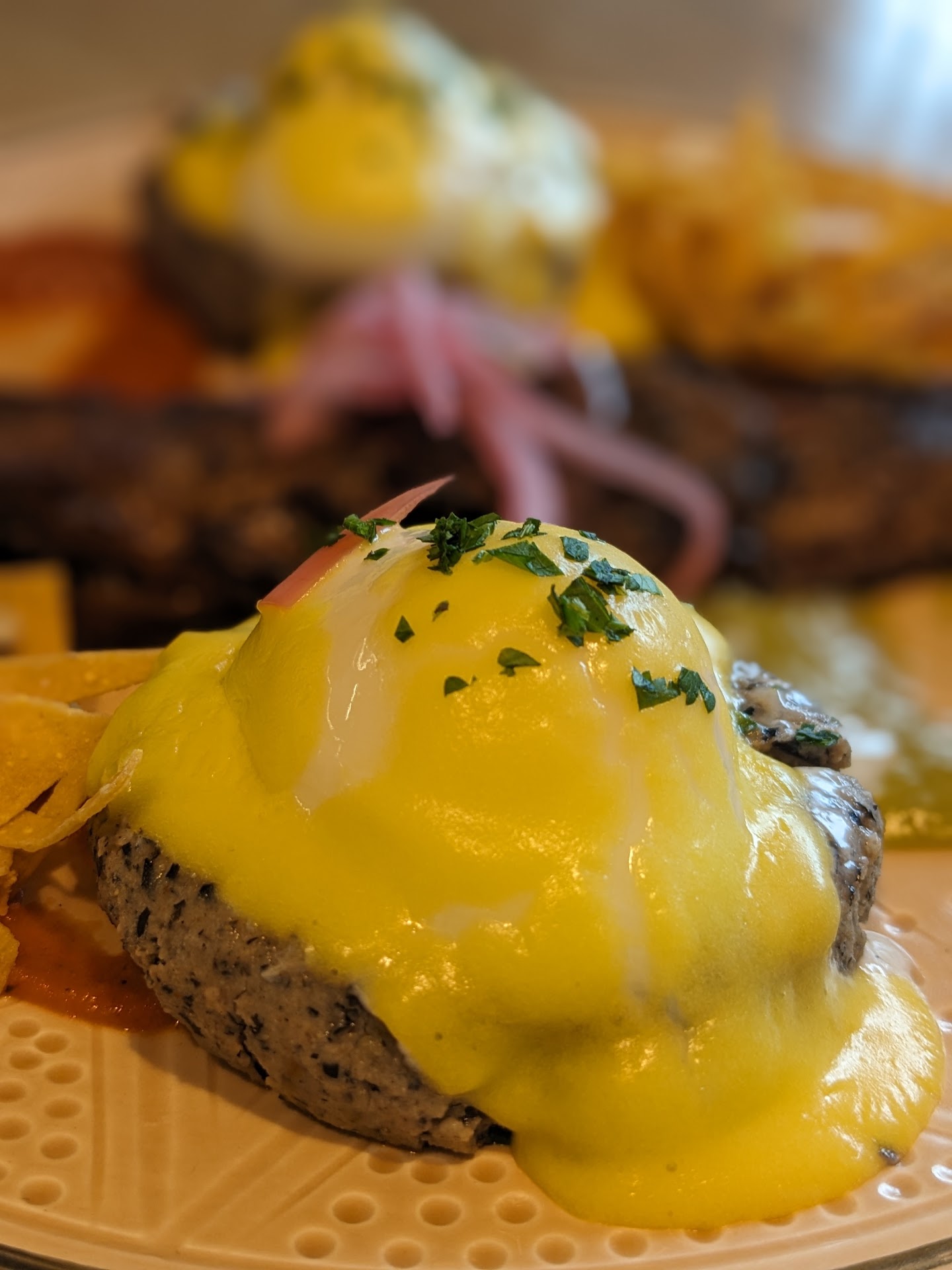 Really really wanted to like this place. I was really excited to see "Filipino breakfast" on the menu and I also love a good fried chicken sandwich. I have Filipino relatives and have traveled in the Philippines before, so of course this was ordered. When it arrived I almost thought we got the wrong order. I honestly have no clue why someone would think this dish was Filipino in any way, at first I thought the rice was with Ube but realized it was black rice?! Made no sense. Portion was insultingly small. Filipino breakfasts are known to be huge. This was sad and weird. No flavor. Should have a giant scoop of garlic rice, generous meat, tocino or longanisa, or bangus, plus fish sauce. This was black rice so overcooked it turned purple, it had a risotto consistency for some reason, dry pork belly with no flavor, some pickled papaya? And one egg. You've got to be joking.