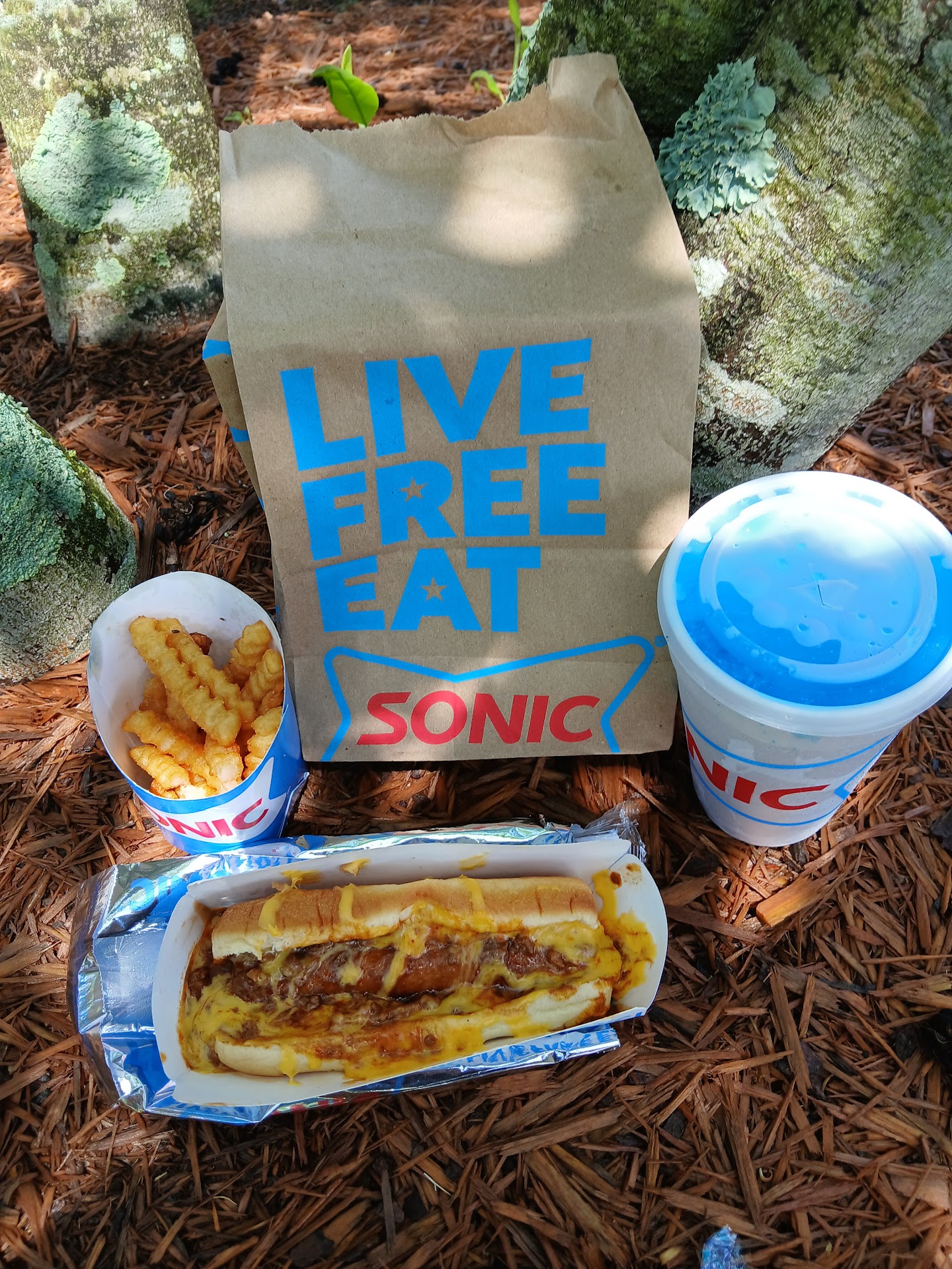 We pull up and order. 2 corn dogs, a slush, and a medium tot. We wait. And wait. And wait. About 30 minutes later a girl comes to our car