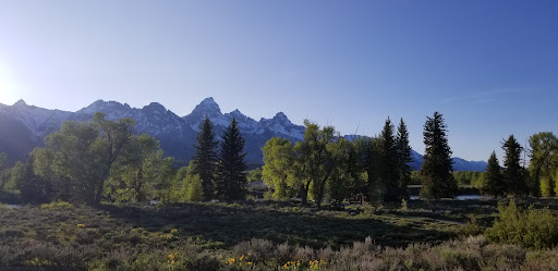 Tonight we stopped by the Spur Bar for Dornans Pizza, BIG WOW, BEST tasting pizza 🍕 ever. 😋😋😋. It was packed because it has rained and the up stairs outside and downstairs outside was wet and cold. We ordered our pizzas and looked around, went upstairs to take in the view of the Tetons, Magnificent!! Then went down into the bar /seating area and looked out the huge windows at the Majestic Tetons and a table opened up ama we got our pizza and sat down, lovely. Didn't say a word cause we were too busy enjoying the tasty...