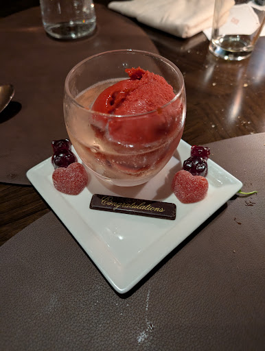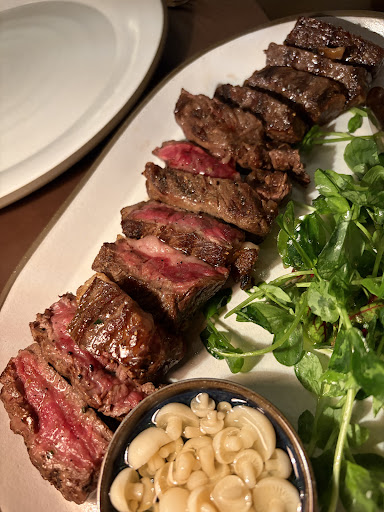 We went here on the first night of our stay and loved it so much that we canceled another reservation to come back. Amazing steak selection cooked to perfection, but don’t miss the starters to share. Had the bison tartar, pork belly (our waiter suggested and he was correct), quail, and scallop and would recommend them all. Did the steak sampler the first night (with some added ounces) and a strip the second. Wanted to try more sides, but stuck with broccolini and fries, both of which were amazing. Had to get the s’mores, which were a bit over the top but fun nonetheless. Our waiter Kevin knew the menu inside and out and made a perfect table side...