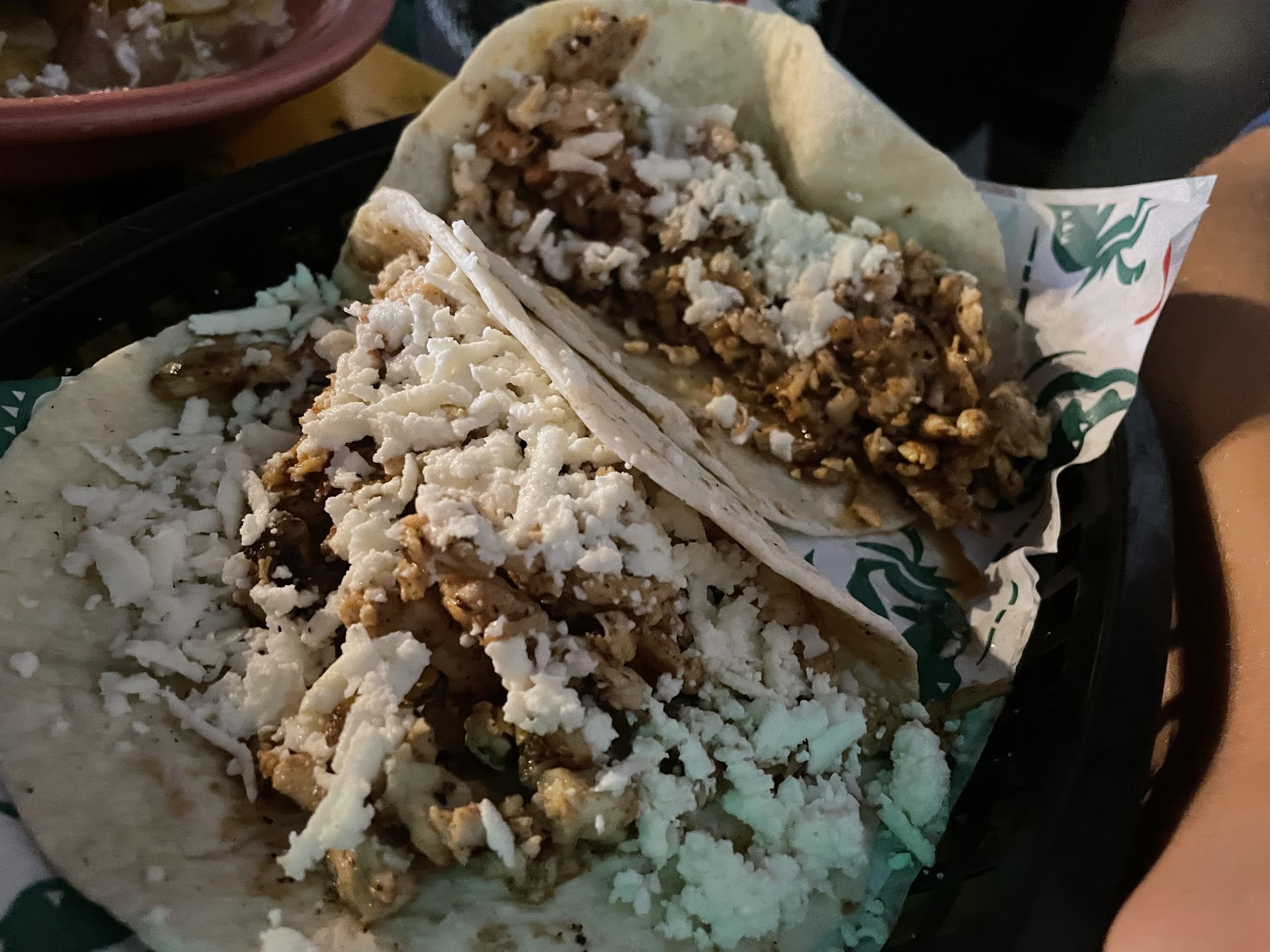 The marinade on the meats were good, but some was a hair over cooked. The tortillas were great! It was my first time having crispy potato tacos. Potato roughly mashed in a crispy fried tortilla with lettuce and Mexican cheese. it was very light, I really enjoyed the texture of it. Now the Chicken Pechuga Pueblana was delish! The thin sliced chicken breast was perfectly grilled, seasoned, and super moist. I'm not sure what the green sauce on it was, but I can taste some cheese in it, we all really enjoyed the chicken dish. My favorite out of everything though, was the Spanish rice, I want a plate of that to go.
