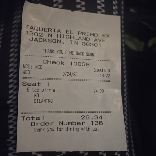 HORRIBLE experience at the Taqueria El Primo express #3 at 1302 N. Highland today. This was my 1st time visiting this food truck/business. The girl taking my order did not seem to understand English well. I asked how much the taco birria's were. She said $1 I said $1? She said yes. I said ok no cilantro she kept saying no onion? I said onion yes, cilantro no. I asked for 6 since she said they were $1. I then asked how much is it? She said what sounded like $6 and some change. I handed her my credit card & she gave me a receipt for $26.34!!! I said you charged me $26.34 for 6 tacos????!! She mumbled something about Tuesday's. I said well I don't want them now & she said it was too late it was already charged!!! She literally had just swiped my card, & wouldn't cancel the transaction!!! Nothing had been made, she literally still had my card in her hand!!! This is ridiculous!!!! Then when my buzzer went off that my order was ready, she had an attitude, no thank you, sorry about the mishap...NOTHING! I will not be returning, that's for sure!!! Worse customer service experience I've had at an establishment in a...