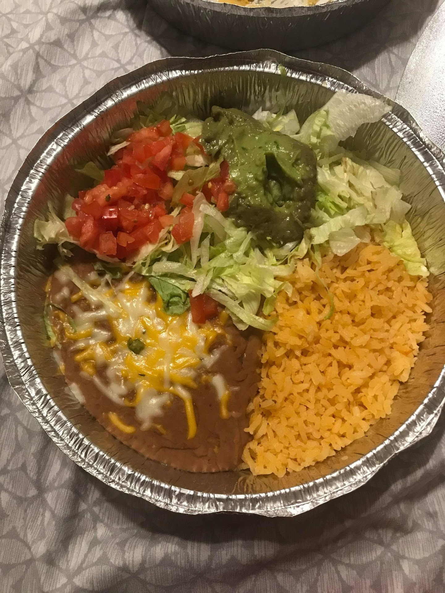 Read moreLet me just start out by saying that the woman on the phone could barely hear me when I called my order in due to the absurdly loud music in the background. I was screaming into my phone for her to make out my order and then the poor woman had to repeat it back to me a couple times to make sure she got it correct. That one star is for her because she did great. As for the food....well the pictures are a result of my order. The picture with the rice and beans is supposed to be guacamole salad which would be great if there was actual guacamole. Yes it is made with avocados as you can clearly see by the brownish outside, however that is what you go and buy from walmart....prepackaged and gross. Ok now on to the main part of the entree....4 shredded chicken enchiladas. The chicken came out of a can. Plain and simple. It smells and tastes like canned chicken with no added seasonings to even attempt to dress it up. Nope just pop open a can of shredded chicken put into the dish nuke it dress the top and out it goes. I will not be spending my money ever again during another visit to Jackson TN. Someone's tia or abuela or mamá needs to go there and throw their chonklas at this...