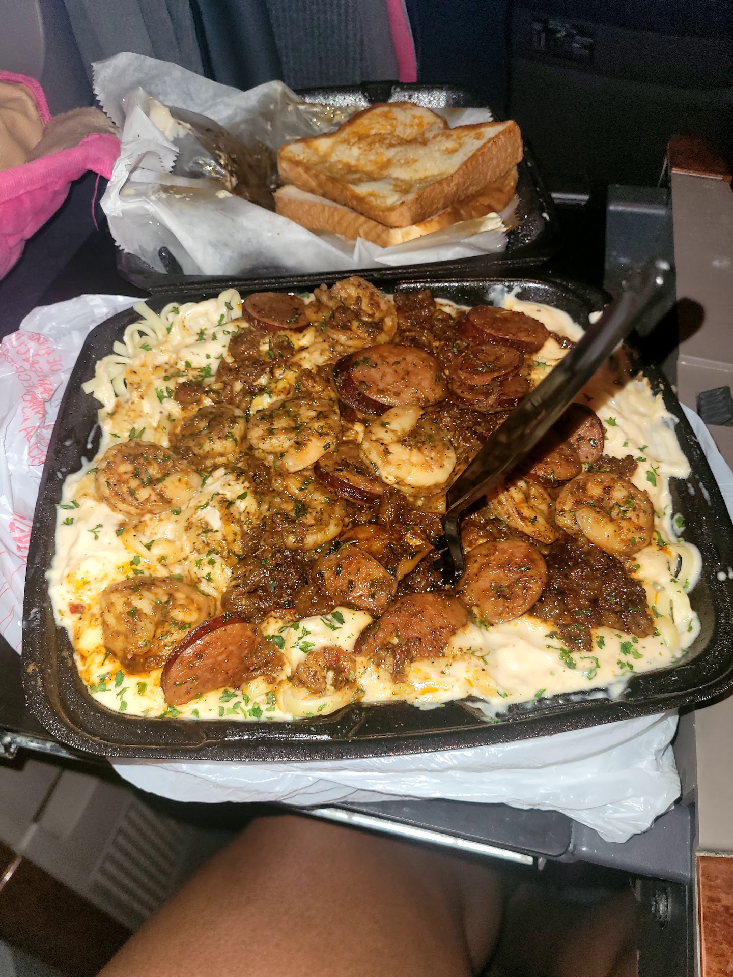 Not sure how to feel about the food😔 The Cajun Alfredo was missing the alfredo sauce taste. The crayfish was salty. The shrimp & sausage was tasty. All of that was mixed into the pasta but i didnt get a 'wow this is delicious' kind of experience. Dont get me wrong the food has a great presentation with a bland taste. One of my chicken wings had feathers🪶. The wings were pretty good until I saw the feathers🪶. Only leaving my honest opinion, I really wanted to enjoy the food as much as the other reviewers. It's...