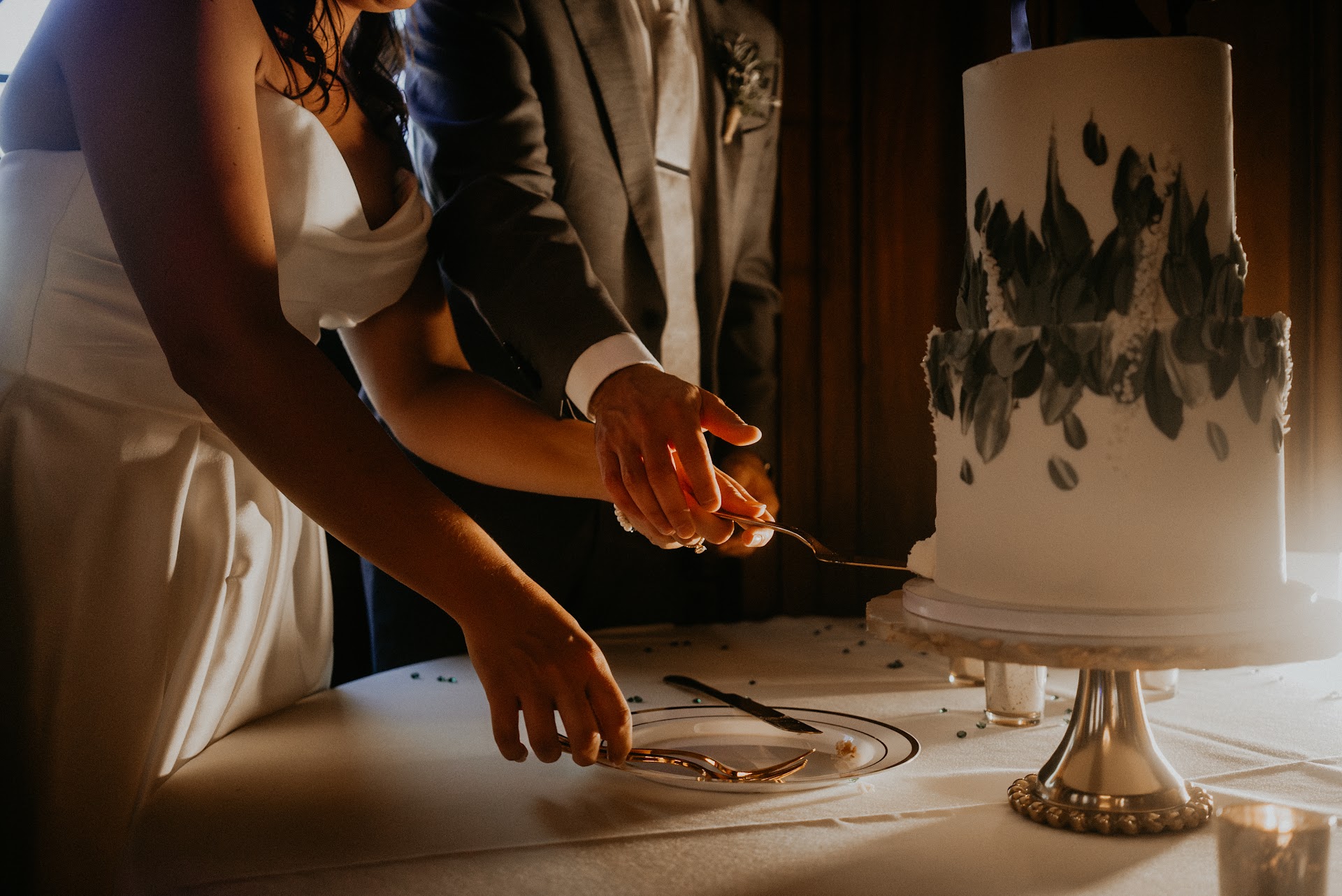 We booked Five Forks for our wedding and ordered a two-tiered cake. This sister-duo is very talented in both baking and decorating. As you can see in these photos, our cake turned out beautiful, and it tasted amazing too. They worked with us during our tasting and allowed us to pick flavors outside of their signature flavors. We went with chocolate espresso and Italian creme with almonds. Our guests were obsessed with the Italian creme and almond flavor! They also offer gluten free and vegan options, and we ordered a dozen cupcakes with a mix of their signature flavors. We heard from our guests that they were delicious.