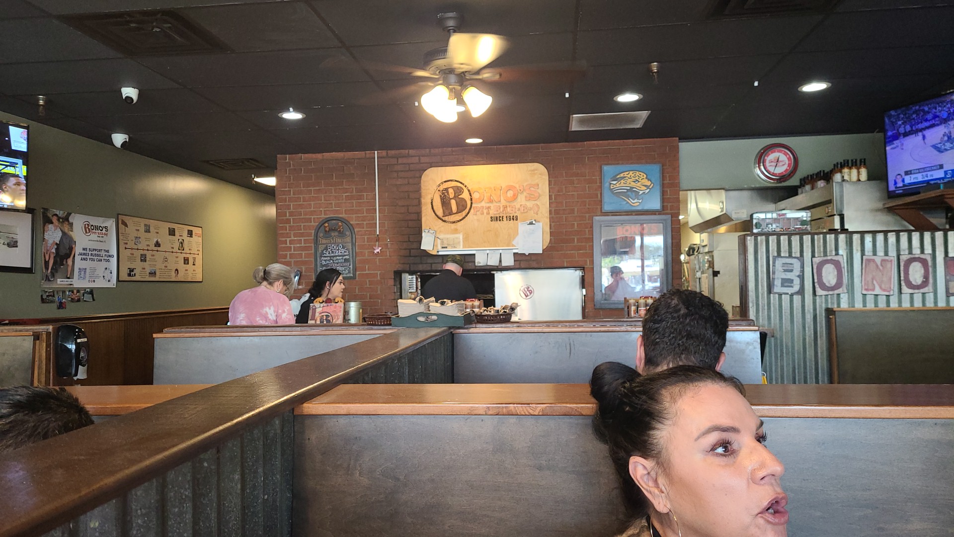I want to start by saying how happy and Great Service we had at this Bono. My wife and I had just made it to Florida from Atlanta for my brother,s funeral which it was also our wedding anniversary, we were sad, tired and hungry driving all the way from ATL when we decide to stop at Bono's for dinner. The staff greeted us kindly and attentive but the manager behind the counter came out to us to greet us and went out of his way to please us. He was caring, kind, respectful, attentive to his guest, great service manager and also a real patriot. I will always visit this restaurant when I visit Jacksonville. The food was the best, delicious and great seasoning just to say perfect.