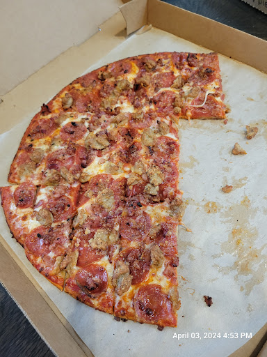 Read moreAs another reviewer noted, the pizza here is quite unremarkable. While it is indeed not bad, it's very bland and quite dry. The danger with thin crust is that you have to be careful how much sauce goes on to avoid it getting soggy - but there still needs to be sauce. They either put a paper thin layer on it or they over cheese it (yes that's a thing) because after they bake it, all the sauce is gone, it's like eating an overcooked pita covered in cheese. If you want any flavor you'll need to get a cup of sauce on the side to dip, otherwise you're eating flavorless crisps. Oh, and this is particularly bad when you get it with pepperoni - if the pepperoni is more crunchy than the thin crust... it's well over baked.