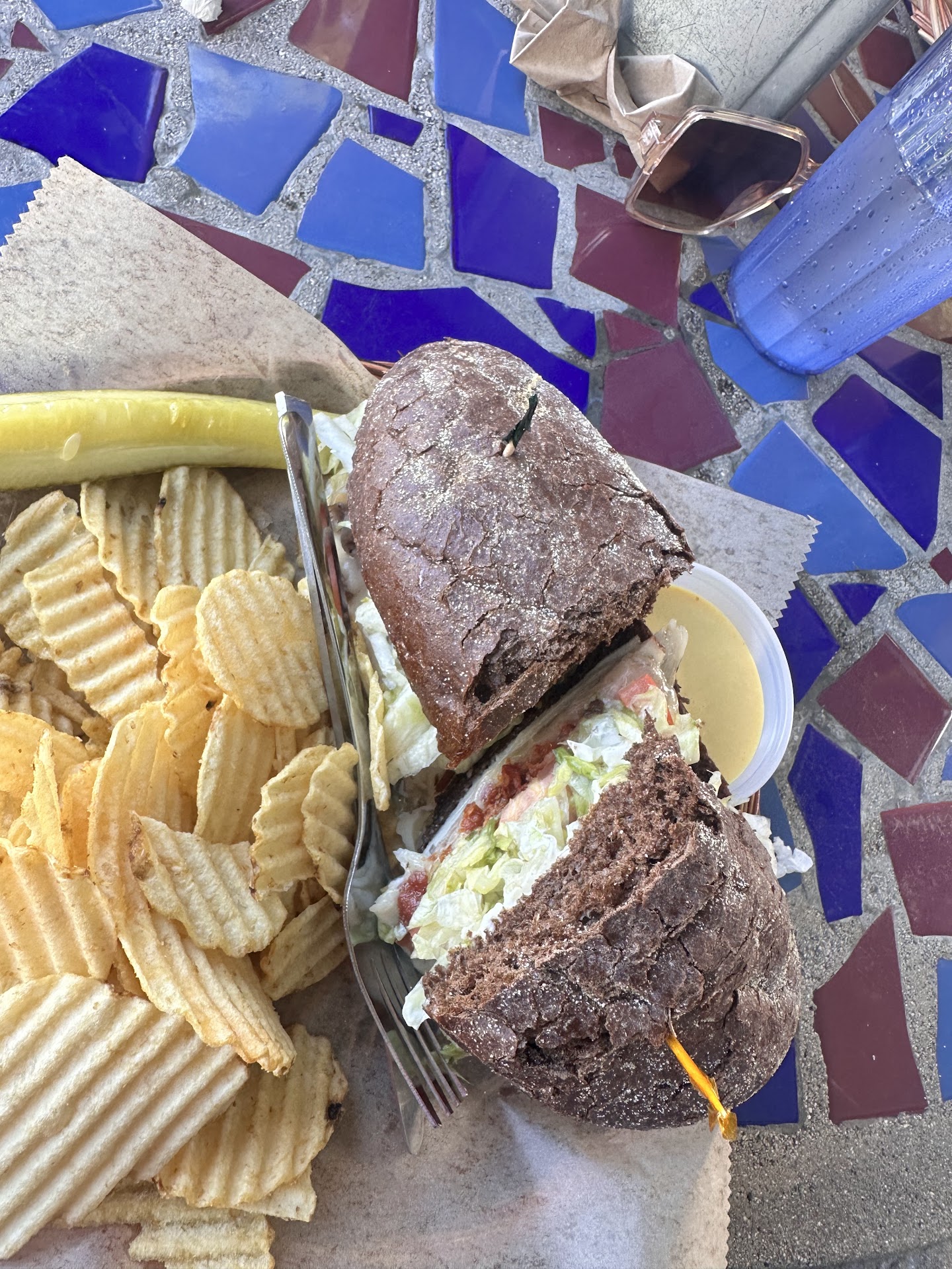 Read moreHad a middle of the road experience here tonight. Turkey Parisian sandwich - pretty good except for the boring school cafeteria-style shredded lettuce. A solid piece of romaine would maybe fix this. The chips that come with the sandwiches are just generic ruffle chips from the grocery store. Nothing special about them. We ordered a tempeh reuben, then a few minutes later (after paying) they told us there was no tempeh, so we went with something $2 cheaper but they didn't offer to comp or refund the difference. We had to go back in and ask (which puts us in an uncomfortable position of asking for the $2 back.. no one wants to be 'that guy' Lol) this should have been caught and taken care of by the cashier/hostess, and not on us to have to ask. Where things really went wrong was the cake and the cookie.. they both tasted like freezer burn. I'm guessing the refrigerated display case they're in needs to be deep cleaned. The snickerdoodle really absorbed the nasty stale fridge/freezer flavor. It was so bad we threw the cookie away after we each took one small bite. The lemon cream cake didn't absorb the nasty flavor AS much, but it was definitely noticeable. I ate the whole slice so it was edible, but I still have the freezer/fridge taste in my mouth. Also, the cake was on the drier side... like it had been sitting out uncovered for a day or two. Pretty disappointing. Hopefully they pay more attention to the QC of...