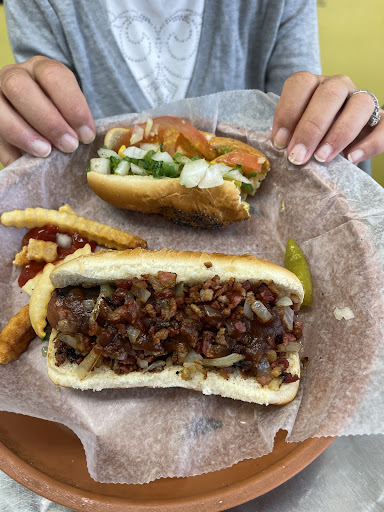 Read moreConflicted is a word that I unfortunately must say I feel with this place. I was extremely happy with the customer service, and the product was pretty good. Why three stars? Well, I think the hype is not in line with the product. My Chicago dog that I asked come with extra peppers came with 1 pepper. Ok, I could let the lack of peppers go, but the fact that my husband's Texas dog came with a scant amount of chili is hard to forgive. The long wait (15 minutes) sealed the three star fate. They were not super busy, and I just find it hard to justify a 15 minute wait for two hot dogs to go.
