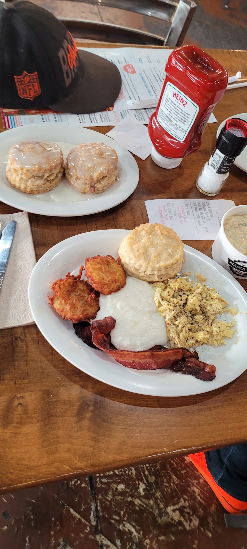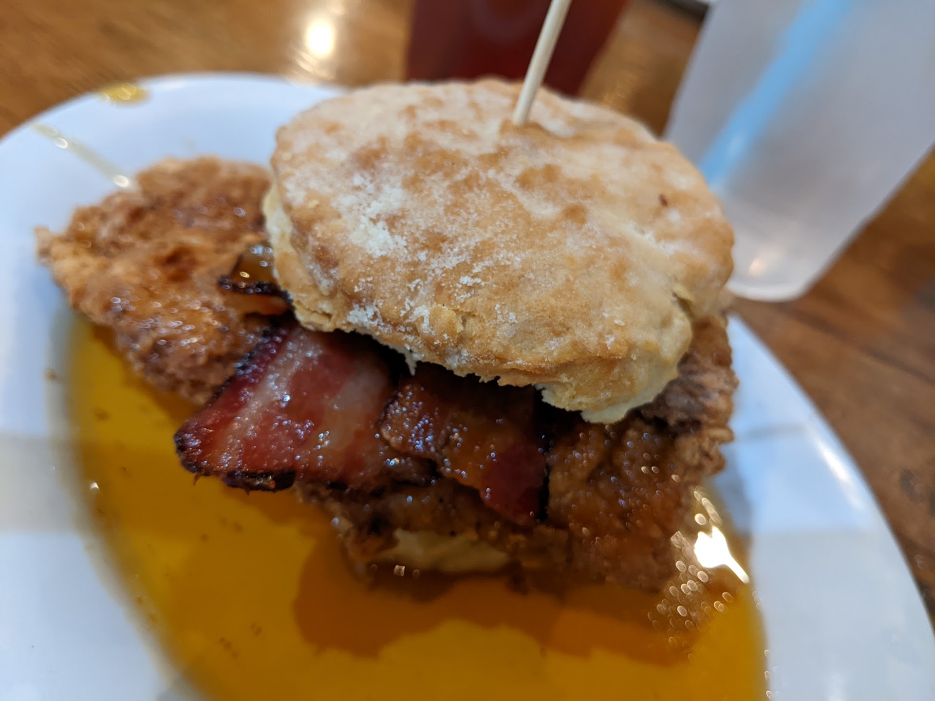Top biscuit could have been a hockey puck. Bottom one was hard on bottom and doughy in middle. Couldn't cut biscuits without a knife. Not at all what I was expecting from a restaurant claiming to specialize in biscuits.