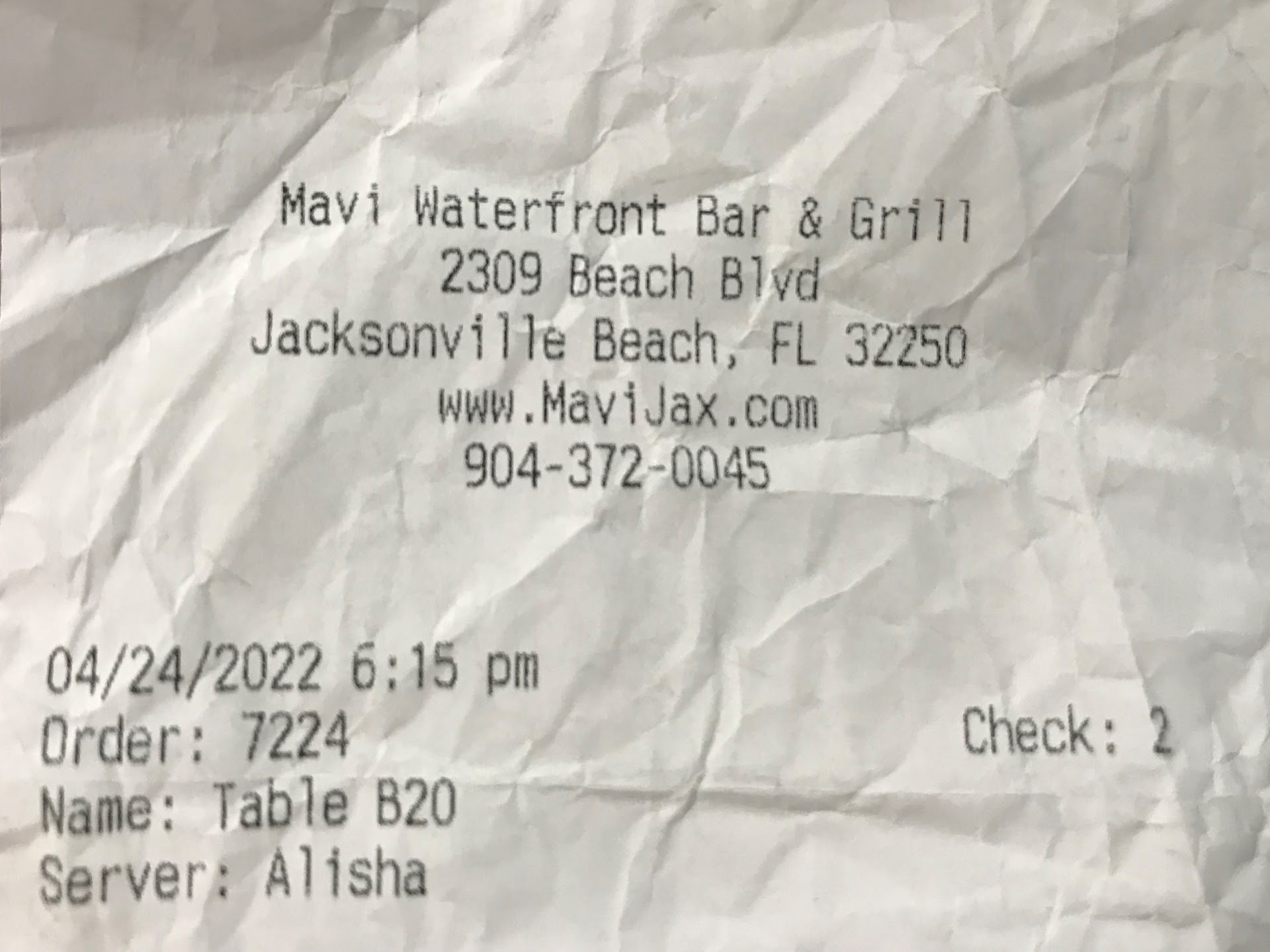 Given this establishment is located in the Beach Blvd Marina and positioned on the river, I'd chosen Mavi hoping for an excellent seafood dish (something special perhaps?), but my server didn't project confidence when we discussed the Stuffed Flounder or Salmon Entree prominently featured on the menu. She did not know the "Specials" when I inquired or have a good recommendation for me. When I asked her for a recommendation, she replied "Well, it depends on what you like." No, Darling, I'm asking what YOU like . . . What kind of a Server stammers when asked to recommend a few menu items? Furthermore, she continued to call me "Sir" long after we'd exchanged prenoms. I'd characterize the service as impersonal instead of pleasant. Meantime, I'm sure she's probably still wondering what happened to her tip? I went with 15% instead of my usual 30 or 40%