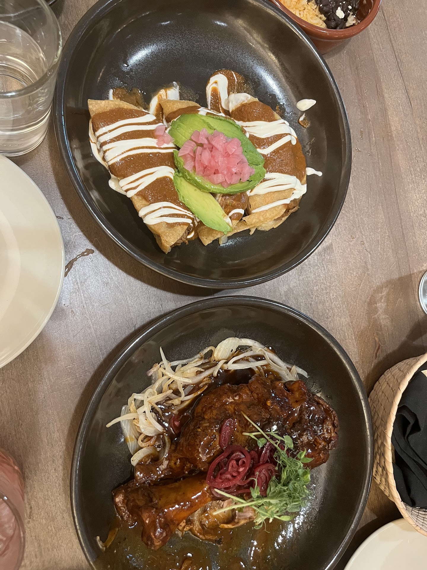 Tacos - we got the 5 individual for a hefty $35. Each somehow tasted the same of dry corn tortilla and weak flavor at best of mole. Each tortilla fell apart as they were picked up, how you supposed to taco!? Honestly, I’m not boujee when it comes to a tortilla but these were bad. The proteins (steak, brisket, and fish) added very little to the crumbling tortilla and they were over cooked and had no flavor. We were convinced to try the mushroom taco which was a variable slop of veggie smothered in sauce which OF COURSE could not be eaten with the poorly structured tortilla. Big ew on those.