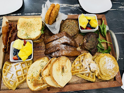 Please do not let this photo fool you. I haven't been this disappointed in an experience in a long time. When me and my friends arrived we were greated and told it would be a few minutes wait. They gave us a pager and we waiting. The pager never actually went off and thankfully we were close because he verbally let us know our table was ready. The service was very VERY bare minimum, horrible, and unprofessional. It took 10 mins for our server to take our drink order. Another 10 to get the drinks. We were interested in the build your own charcuterie board but there wasn't a list of options to pick from on the menu. Took another 10 mins for him to circle back. We asked for assistance with the options which he said they had a separate menu with the items on it. I'm thinking why not give each table this list to save the hassle.... Waited 5 mins before getting the menu. The photo I posted was the medium size and was $49. That board is enough for 2 people and maybe a 3rd if everyone eats very light. I also opted to do the bottomless mimosas. I ordered sweet with orange juice and it was literally the worst mimosa I have EVER had! When he finally came back around I asked for another with apple. That one was ok but I didn't taste much champagne and it was very weak. I paid for the bottomless mimosa which was $19.95 and the service was so horrible I only had the 1 drink the entire time. I literally could have paid $8 for one mimosa. I'm thankful that another team members brought over our food which was hot. The food was served on a ugly cutting board which I wasn't expecting because of all the pictures of it being service on the circle wood and some had tiers. The food was just ok. Nothing special. It's like theme park food sort of. Super expensive and nothing special. Once we were done we asked for the check. We waited 20 mins and still no check. He came back and asked if we were ok and reminded him we been asked for the check. He brought the check back back and walked away. We waited so long that time that we got our drinks and to-go boxes and walked up to the server with cash in hand to check out. Needless to say I have never had such a ridiculous experience at any restaurant and beyond disappointed I drove over a hour to have basic food and horrible service. It was a few other things that happen but I wont bore you further. Just know this is all show and nothing that will leave a...