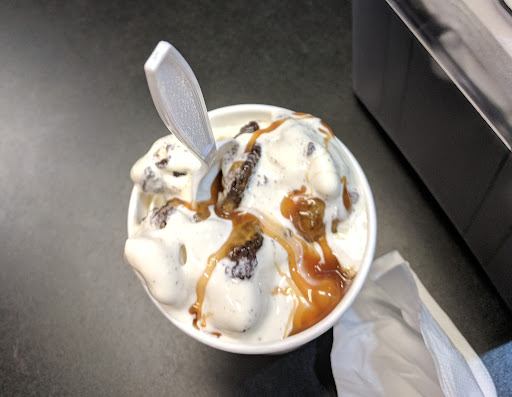 So there are three flavors: Vanilla, Chocolate, and flavor of the day but don't let that discourage you from coming. The flavor of the day is always great and the customization's you can do with those flavors is almost like having more flavors. For starters, there is something called a "Grasshopper" on their menu which is vanilla with mint syrup mixed in so it's basically mint ice cream and has chocolate chunks. You can also get add ins like brownie bites and red velvet cake bites. In the back they have a fridge that has quarts, gallons, and cakes made out of previous flavors of the day that you can buy. The food is really inexpensive. They offer regular food and they have an ice cream sundae for a dog, which is adorable. This is a great place to bring...