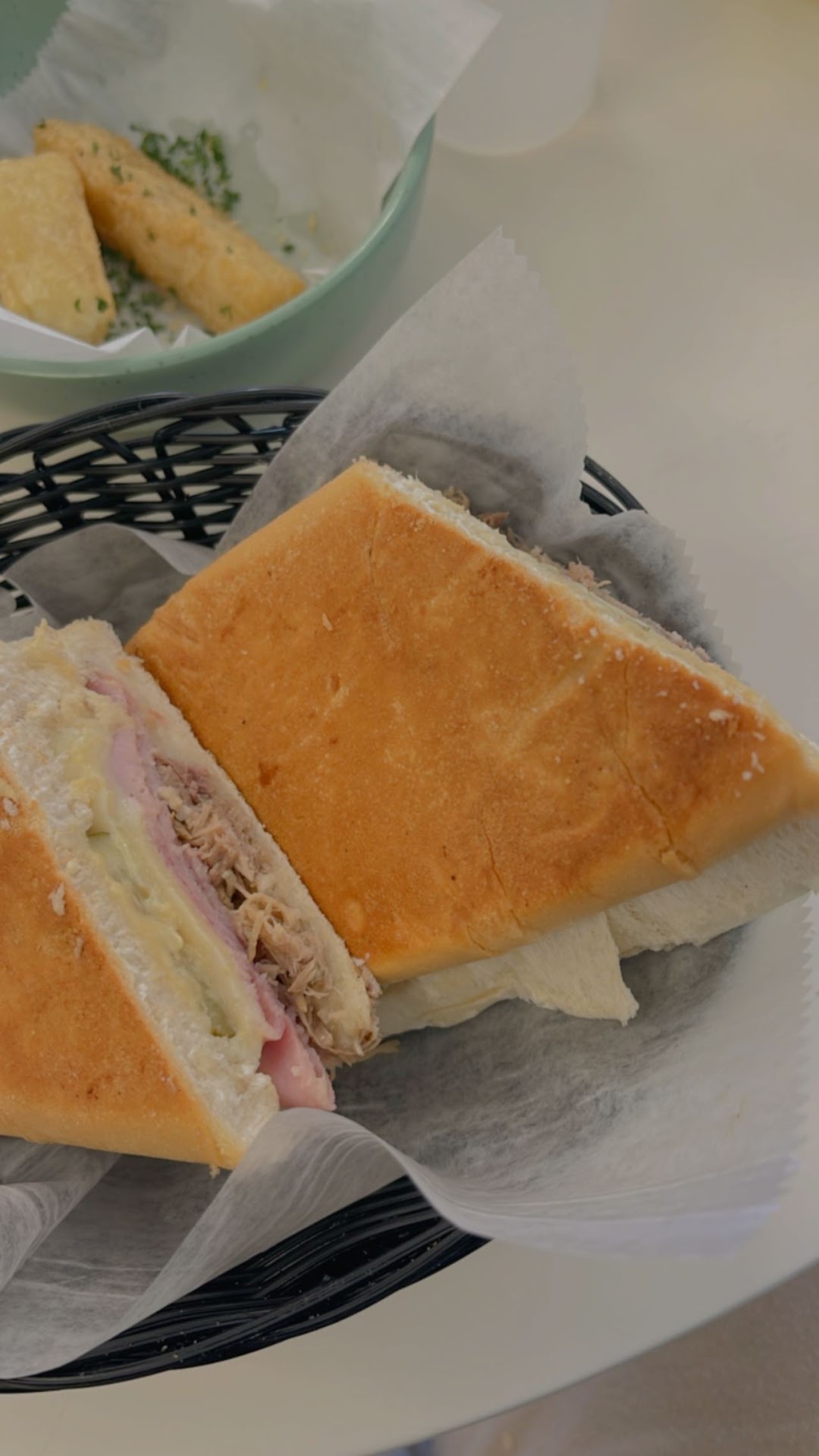 The sandwiches tell their own stories of Cuban tradition: The Cuban sandwich is perfectly pressed with roasted pork, ham, Swiss, pickles, and mustardâsimple and flawless. The Medianoche offers a sweeter take with soft egg bread. The Pan Con LechĂłn and Croqueta Preparada are loaded with flavor and authenticity.
