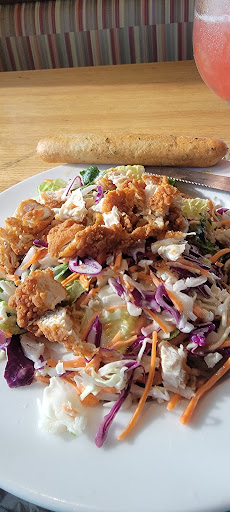 My huge Oriental Chicken Salad with crispy chicken was delicious and they didn't skimp on the dressing. It was served with a hot, buttery, herb breadstick which was a nice touch. I do miss the mandarin oranges the salad used to come with decades ago. I left with enough salad to be served as a side with another meal.