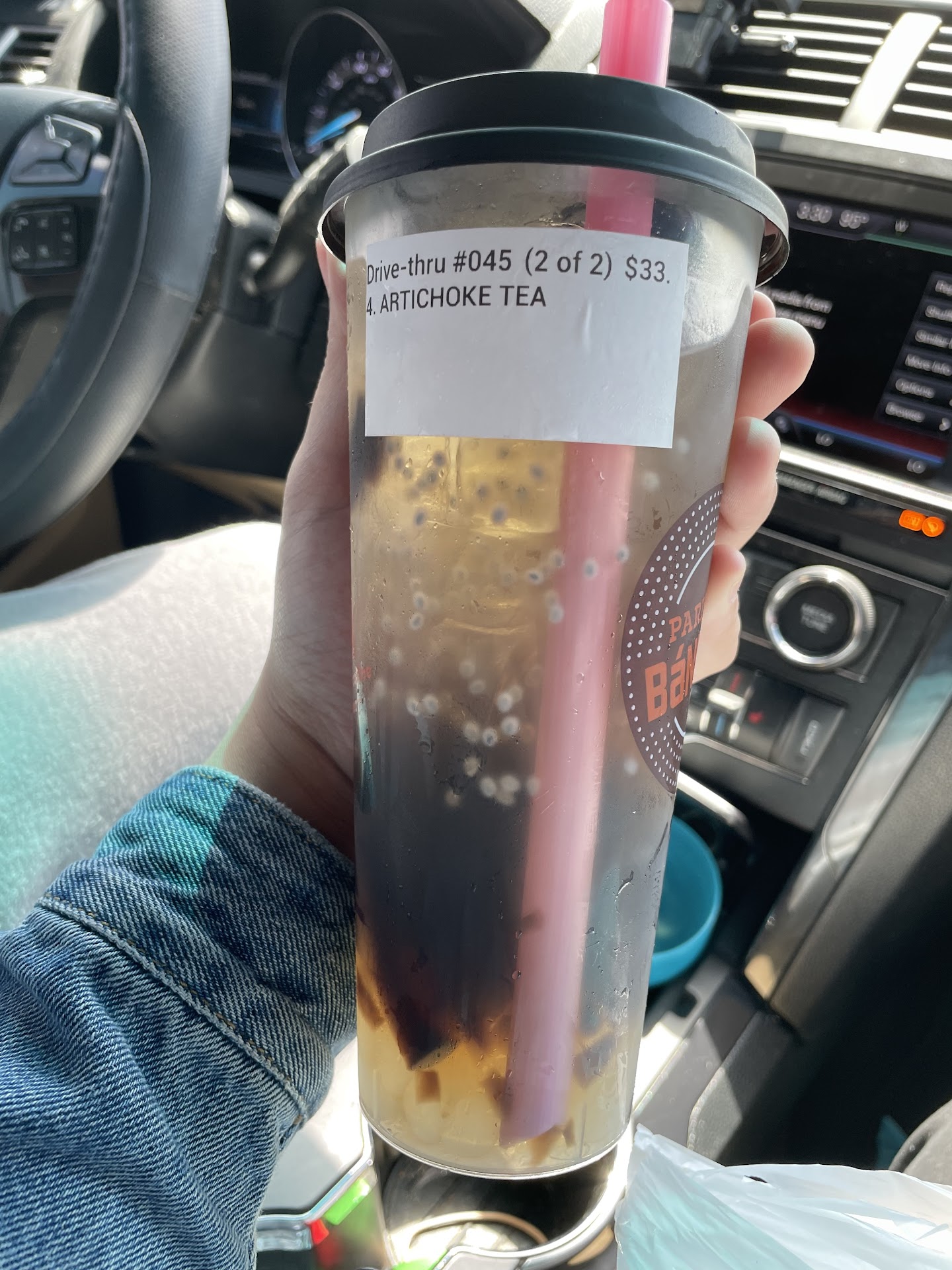 Only thing that is delicious is the artichoke tea that I will be coming back for. I'm Vietnamese so I know how a banh mi is supposed to taste. I was excited to finally try this place out, I really wanted to like it. I ordered the B1. Banh mi dac biet, my bf had the same, and my son had the B2. Grilled pork banh mi. I asked for no jalapeños for my son's banh mi but I guess the employee didn't hear me because he kept cutting me off while I was placing my order at the speaker and wouldn't let me finish speaking before talking over me and asking me if I wanted jalepenos at the same time I was telling him no jalepenos. Same with the thai tea that I ordered for my son, I said can I get a thai tea no boba as he was asking if I want boba. Annoying how he wouldn't let me finish talking. Anyway so we park the car and start eating, a few bites in, my bf says what I was thinking first... I don't want this anymore it's old. I was like me either honestly! We expect banh mi to be fresh, that's how its supposed to be eaten. This banh mi was not fresh out of the oven and tasted like it was prepared earlier in the day. The veggies were also soggy and didn't have that crispy crunch that you should experience while eating a banh mi. The portion of ingredients was off which is important to how the banh mi tastes overall. The bread wasn't fresh so it just ruined it and it was a smaller in proportion to the meat because of its slender size. There was way too much daikon or pickled carrots in it that were soggy when they should be crispy and because there was so much it made the banh mi soggy and the flavor overpowered everything else. We didn't finish our banh mi and went to popeyes instead. Do yourself a favor and go to Q Cup right across the street. The worst banh mi I've ever eaten in my life. Customer service is lacking as well, said thank you as I left the drive thru to the already annoyed looking cashier who was upset when he had to repeat my total and he...