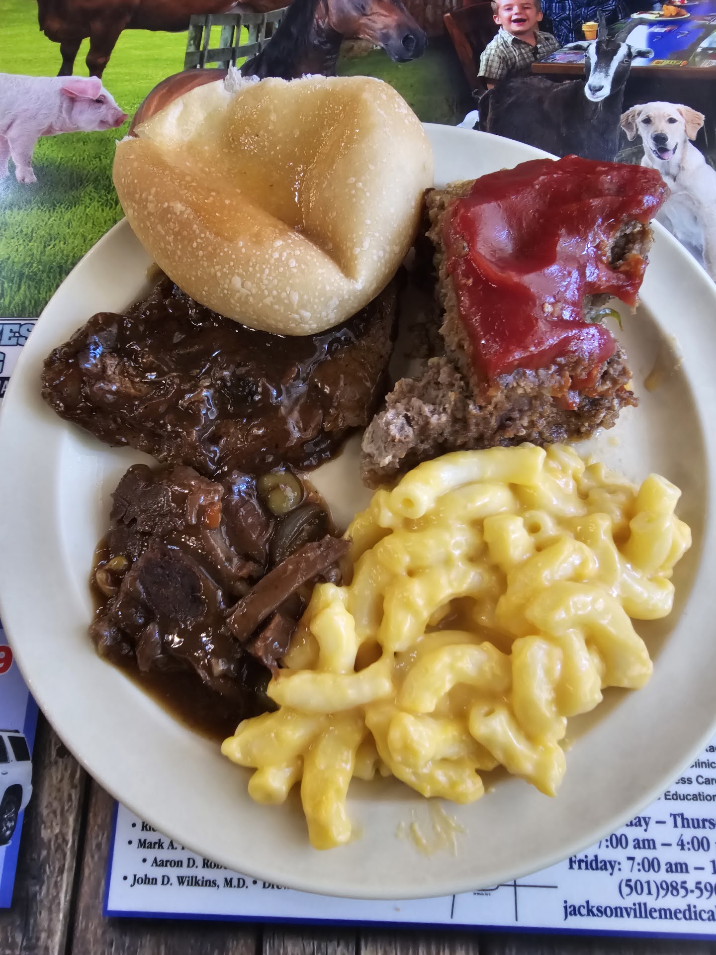 I'm staying at a motel right next door. Honestly, I was just going to go to Walmart to buy some groceries and eat that for dinner. I'm so glad I went to this place. I'm from about 2 hours away and it was like I was on a different planet. The people were nicer, the staff was great and the food on the buffet was actually hot. I felt like I was eating a home cooked meal. I wish I could bring this restaurant and the staff back to where I live. I highly recommend Barnhill's Steak and Buffet restaurant!!!!!! UPDATED.....I'm going back home tomorrow and just had to go to Barnhill's again. I don't think I've ever been excited to go to a specific restaurant but I honestly was today. Well, after I left I was a little less excited. So, I ordered the buffet again, put my receipt on the table and fixed my first plate. As I sat down, a server went right by me. I figured she would come back and bring me silverware and ask me what I'd like to drink. Nope, she bussed and cleaned some tables after those guests left. Apparently, where I was sitting was not her section, I'm guessing that's why she didn't WANT to help me. "Not my section " is a terrible reason not to help customers. My server was likely busy in the back. I honestly don't know for sure. But, when I or anyone has to get up from their table and get their own silverware, it doesn't just reflect poorly on the server of that specific table, it makes the entire business look bad. Teamwork makes the dream work. Servers should "serve" all customers, even if not in their section. Don't have blinders on. Also, on my first plate, I had some sweet potatoes, fish, liver and carrots and chicken and rice. I wasn't expecting there to be a fairly large bone that I nearly choked on. I didn't see any sign warning me of such. So, I asked for a manager just to let them know that I almost choked on a bone and I wasn't sure where it was from. Obviously, I'd expect a bone from a whole piece of chicken or from a porkchop but..... First, the server told me that the manager said "I can't talk to them right now". Maybe better to say, " ok, I'm dealing with another guest right now, but will be right over". Also, when the short blonde haired manager finally decided to come over to my table, she asked me if I ate the chicken/rice, after I told her that I wasn't expecting any bones. She just had the attitude like I should have known that there would be big bones in it and that it happens a lot and offered no apology. Someone is going to get "hurt" if not already, by unexpected bones. As I said earlier, I truly was excited to dine here again, and I complimented the owner after the first time (I wasn't aware he was the owner til during this latest visit). In my opinion, that manager I spoke to about the bone does not have very good customer service skills. Im not sure if she is related to the owner in any way, but she should stay far away from the front of house. And my server had some choice things to say about that manager and about other servers which I found to be very unprofessional and actually made me uncomfortable. Im leaving the 5 stars for everything even after this 2nd visit because although this visit was disappointing, all from the staff that I encountered, the food was once again GREAT. And the fact that most people won't read this very long review but they will see the 5 stars I gave them and will hopefully give Barnhill's a chance, and hopefully they won't encounter the failing...