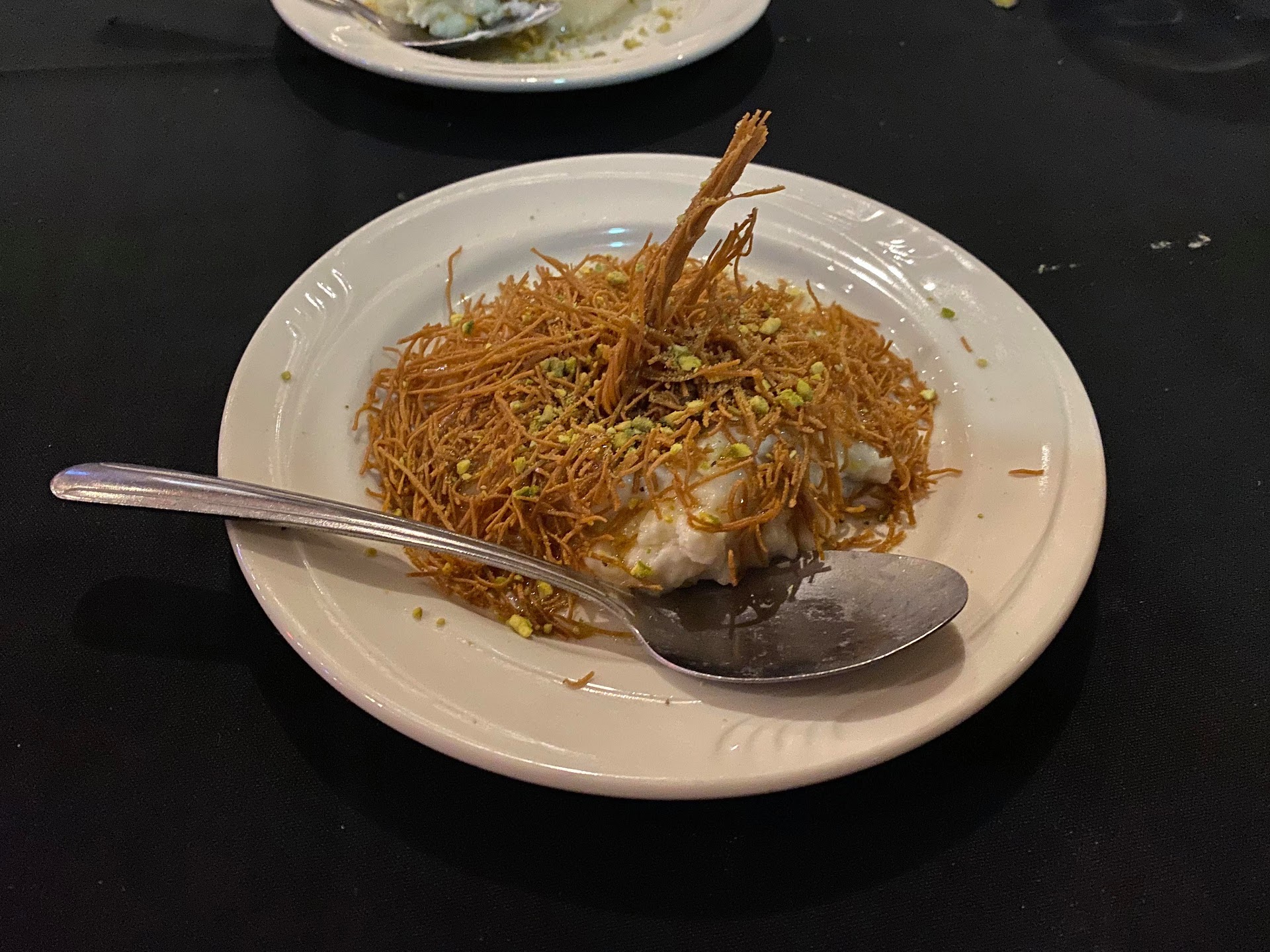 Melissa came back and she surprised us with two desserts! We got to try Beirut Nights and the Osmaliah. Both have semolina pudding which is just perfection. The Osmaliah has some stringy buttered dough on top and it is just a wonderful pairing. We were pretty stuffed at this point, but we found the inner strength and courage to eat it all.