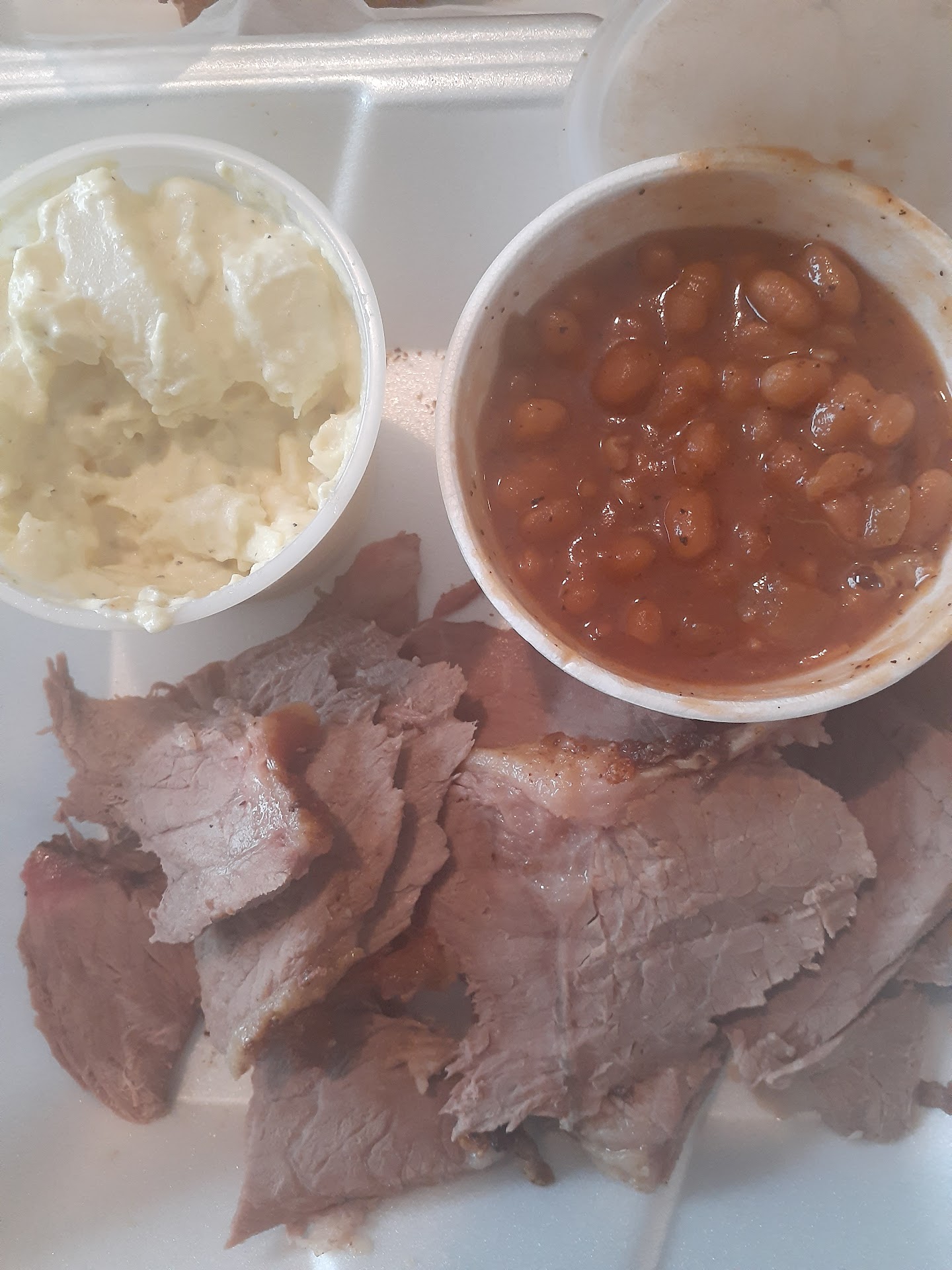 The positive side is the food came out quickly and the green beans were good. The Mac and cheese is better if you got the Golden Corral or make it form a box. The brisket, was hands down the worst BBQ smoked brisket I’ve ever had. If I hadn’t paid $22 I probably wouldn’t have eaten it. The brisket was cold, dry and had ZERO flavor, almost as though it was just baked and over cooked at that! On top of that the must not have a steam table to keep things warm because it was cold the fats had hardened again. There isn’t much smoke smell to the whole joint so it makes you wonder how many corners they cut on their prep.