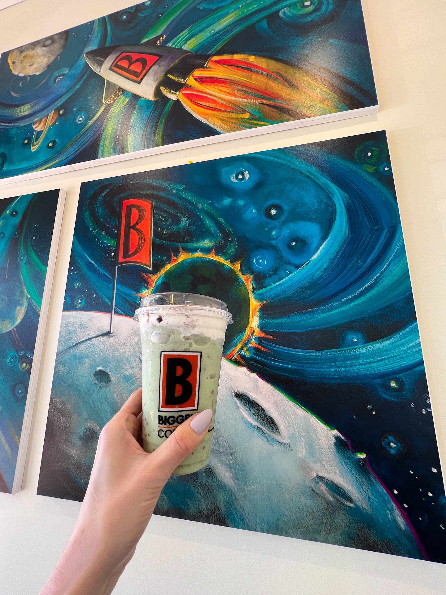 I asked the baristas which items were their faves off of the specials menu and they gave me great suggestions! I went with the mint creme freeze with the whipped topping and it was so pretty and delicious! I was not expecting the pretty art on top; what a nice surprise! I would definitely order again despite myself not usually being a huge mint flavored fan. This mint chip freeze reminded me of a much better version of Starbucks Java chip.