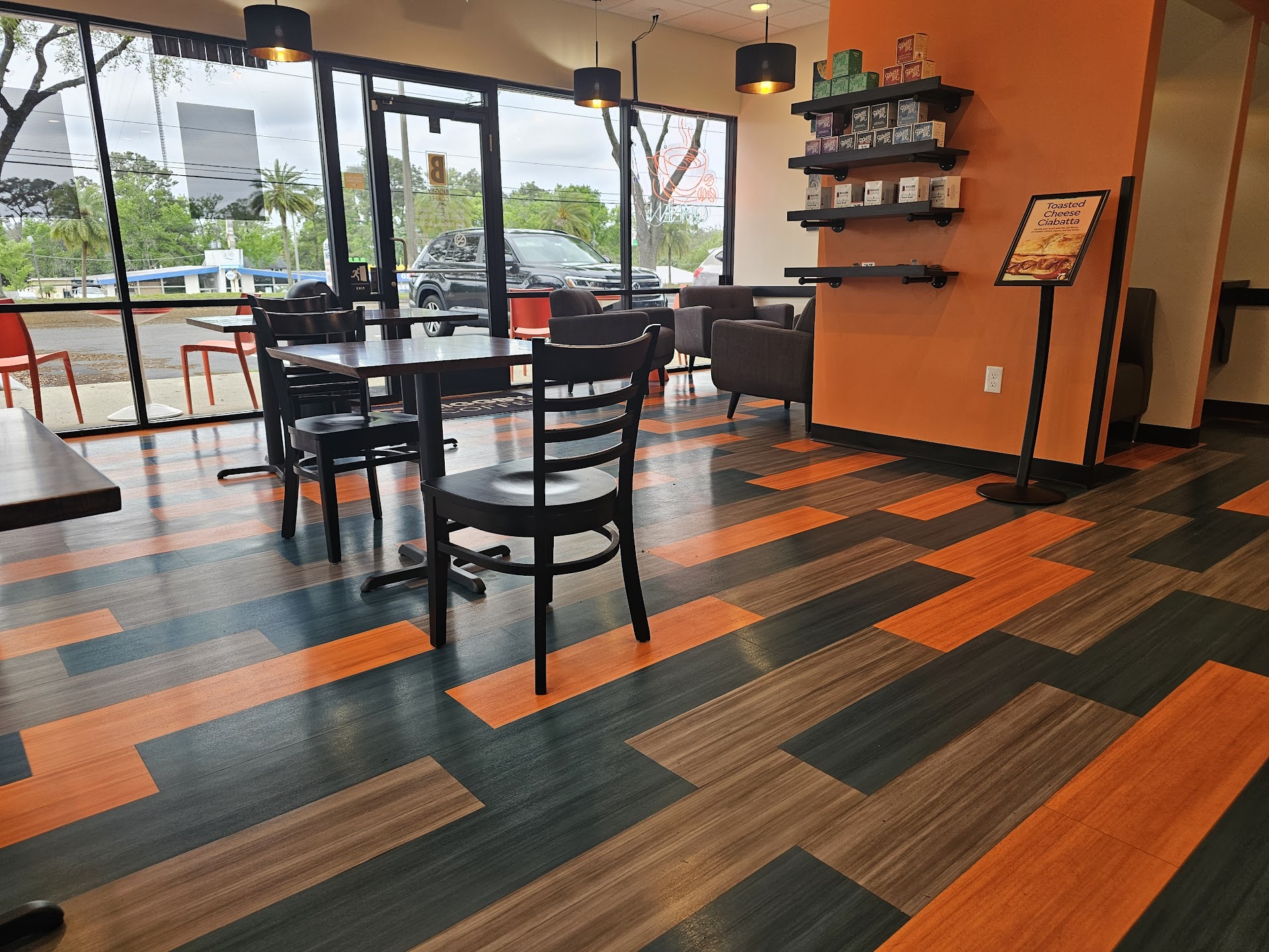 Food 5 stars, Customer service 1. We walked up on a Sunday morning with no one inside the store, and one person that just pulled up at the drive through as we were walking in. There were about 4 workers. The young lady at the register was very likely new, and struggling. She didn't make eye contact with us as we waited at the register. After about 2 minutes she put her hand up to let us know she was still helping the car in the drive through, and she would be with us soon. We proceed to stand there for close to another five minutes as she still is trying to figure out the cars order, AND get their drinks to them. Other workers see us and don't try to help, one even stocked the muffins right in front of us. Finally another lady asks if she can close that order out and takes our order. We place it and it's ready fairly quickly. We ordered two drinks and a sandwich. They realized they had packaged our sandwich with a to go order, so they had to ask the delivery guy for the bag back. We finally got our order and left. We had ordered a bacon cheese ciabotta, but they were out of the bread so we got it on an asiago bagel. The coffee was tasty and we both actually enjoyed it. The sandwich was really good! So the product was certainly not lacking, just the customer service. While I will likely try this place again, if the customer service is consistently not good, I will opt for...
