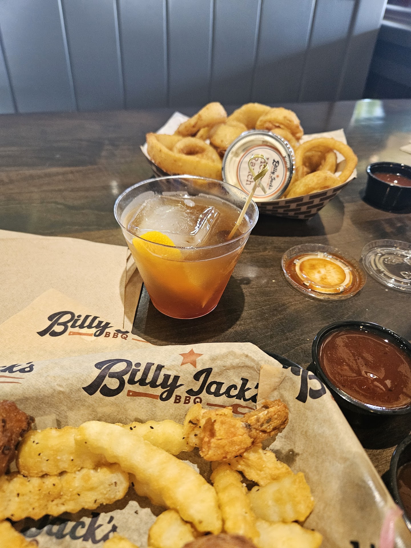 Read moreMy wife has been telling me about Billy Jacks for a bit now so since we were coming home from the beach we stopped in. Very open atmosphere with a great view of the St Johns. We ordered the Brisket sandwich, fried shrimp basket, the fried chicken special, hoecakes, and the old fashioned.
