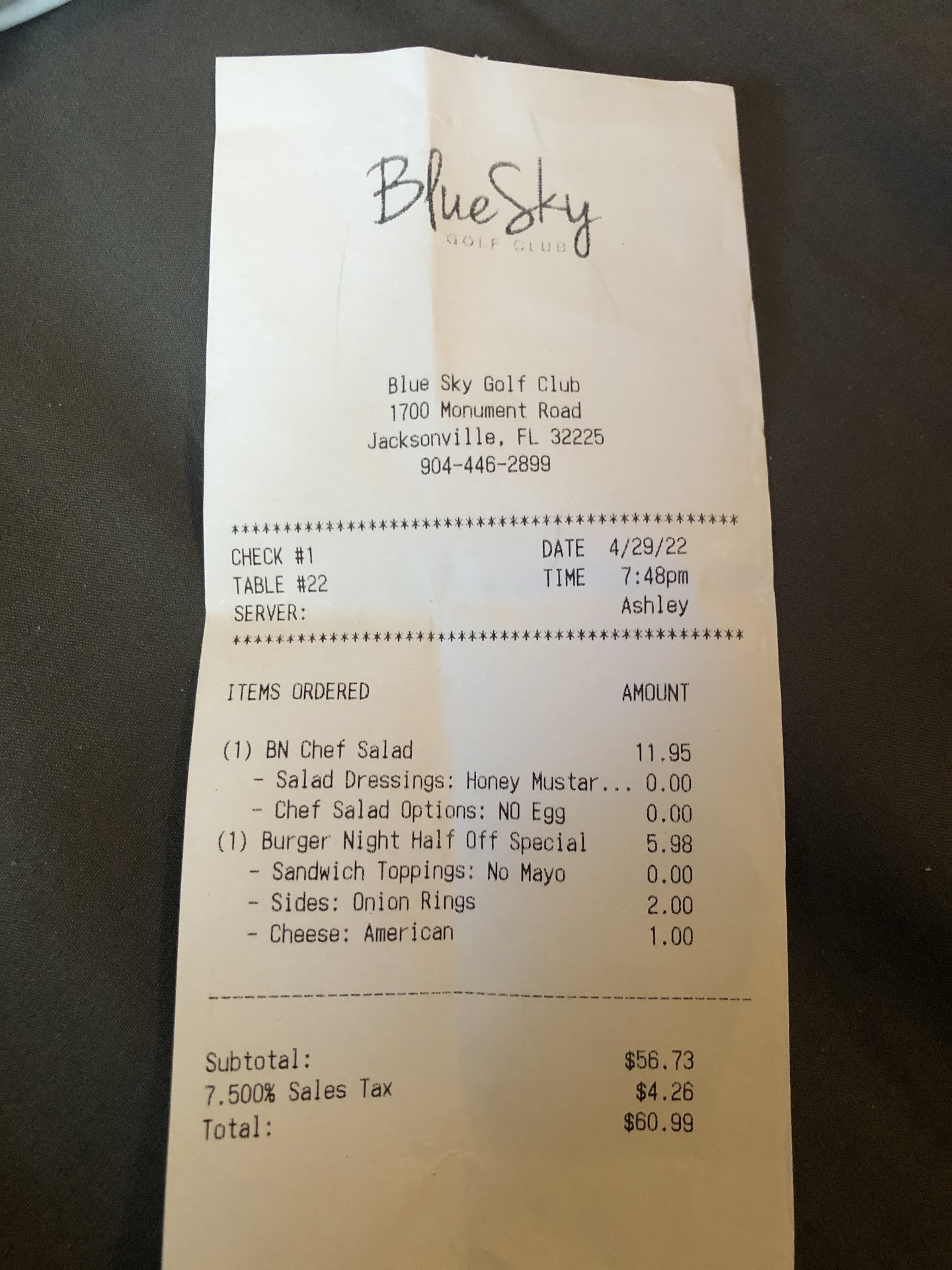 Read moreBlueSky Bar & Grill is very cool spot, it’s kinda hidden inside behind the JAXEX Airport, they have a golf court, golf carts and a small entertainment golf bays similar to top golf but way smaller. They also have a fire pit outdoor as a hangout seating area for those who want to enjoy the nice Florida weather. The restaurant is top notch. Food is on point with some of the most popular dish for instance the famous New Orleans Po’Boys. A bar and a small party room for at least twenty to thirty people are also available to small gathering of friends or family. Please if you are leaving in Jacksonville go check it out, It is guaranteed you are...