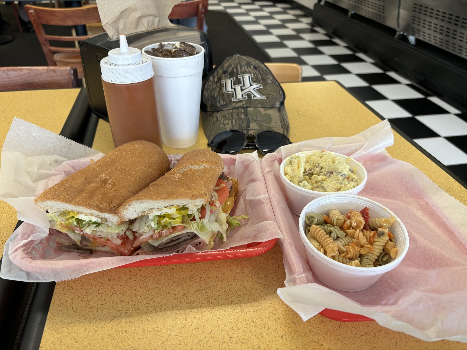 If you live or work near Belfort Rd near JTB and 95 you’ve probably seen Broadway Deli & Grill across from the US Post Office. It’s a weekday lunch spot and is buzzing with area residents and nearby healthcare and office staff. It sits directly across from Ascension St Vincent’s Southside. It’s a shame I’m unable to get over here more often. Their cold and hot sandwiches are big and made fresh to order. I’ve tried a number of sandwiches and have enjoyed every one. Today I ordered a 12” Park Avenue…hot Roast Beef, Ham, Turkey, Provolone, lettuce, tomato, onions, banana peppers, mayo, mustard and Italian Spices on a white hoagie. For sides I ordered a small pasta salad and small potato salad.