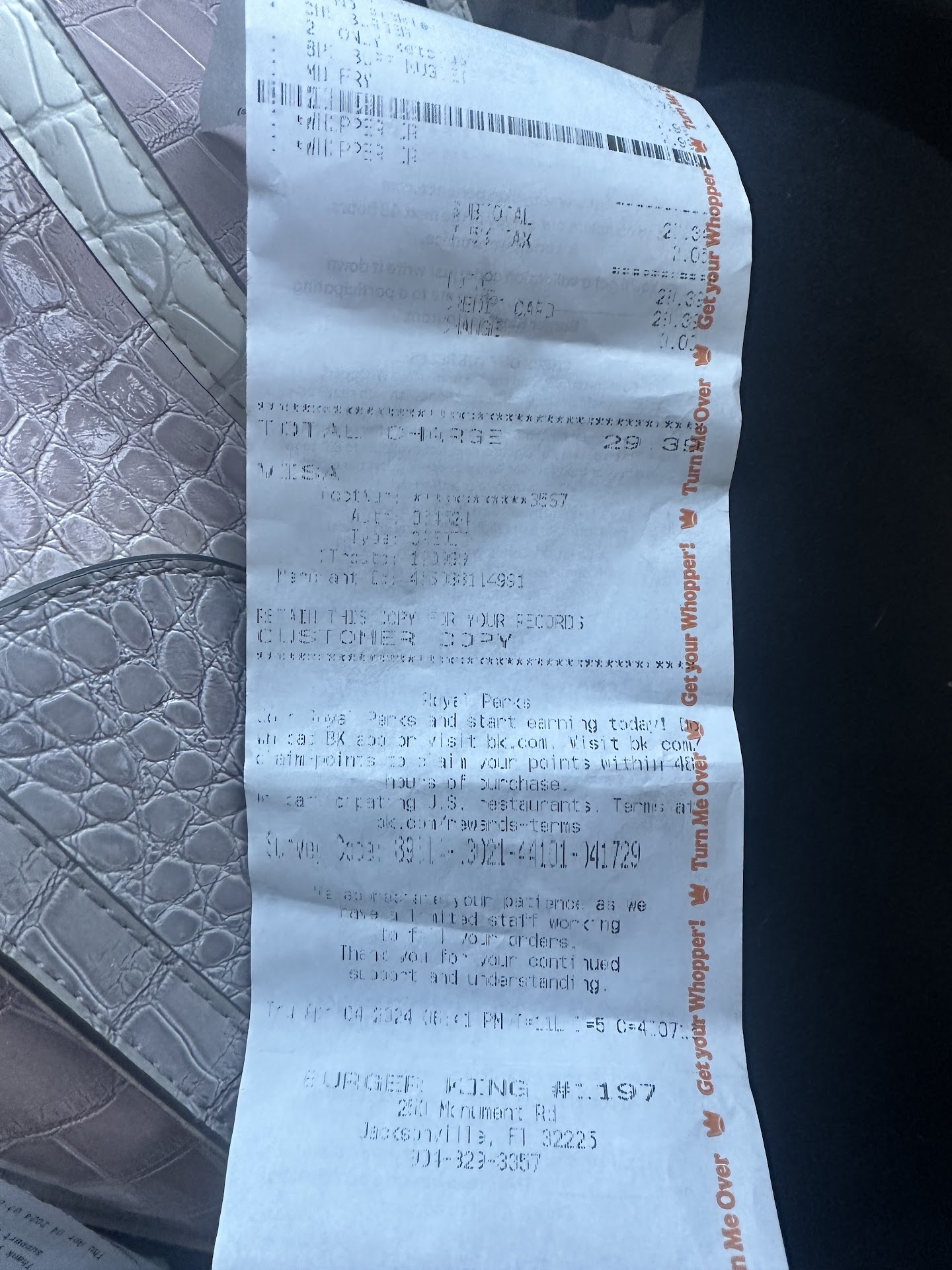 Read moreWent there on my own after my attempt at cooking dinner didnt come out right. Ordered a double whopper with cheese and two double cheeseburgers and fries. Get my food, check to see I had everything, then went home. Got home and set the food out. Wife tells me that her double whopper is not correct. I ask whats wrong and she proceeds to tell me there is no cheese and and they put mayo on it (she wanted it with only light ketchup, mustard, and pickles only, plus the cheese). I check my double cheeseburgers now and find I only received regular cheeseburgers. On top of that, the fries were salter than the ocean.. Frustrated since I live a few miles away and in bad weather it takes a few minutes to get to the location, I try calling the store 4 times, nobody picked up. So with no other recourse, My wife and I drive back to the store. The manager asks what the problem was and I explain whats wrong. She has her cook remake the burgers, telling him exactly what needs to be on it. I didn't bother complaining about the fries. I get the three burgers and we head back to the car in the pouring rain. For giggles, my wife says let's check the burgers before we leave, i laugh thinking no way the messed it up twice, I was wrong. My 2 double cheeseburgers were perfect. My wife's double whopper on the other hand was still missing the cheese and light ketchup. I get out of the car to run back inside real quick, still down raining cats and dogs outside, and the lobby doors are locked. Less than 5 minutes elapsed between us getting in the car and the doors being locked. The manager says we have to go around to the drive thru. So I get back into the car and instead of having them remake the burger again, we just requested the cheese slices and left. Got home, put some ketchup on it and at the half cold burger. Pretty bad experience considering that location usually does so well. But I know we won't be going back there for...