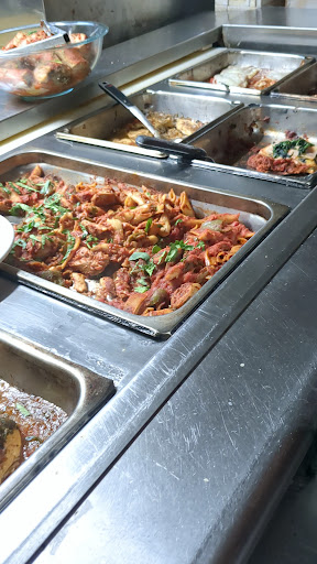 My husband and I walked here from our hotel, the Hyatt Riverside. It was a Saturday night, 7:30pm, there was no one in the restaurant and Only one man working behind the counter. He motioned to us the “display counter” which had various pizzas and pastas sitting under a heat lamp. I think he preferred if we ordered the food that way, but since we’ve never been here before, we weren’t really sure, and considered leaving…. The man brought us out his menu and we ended up ordering a pizza and veal piccata off the menu.