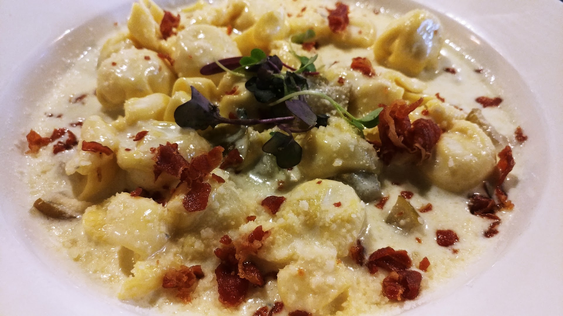 7/10 Son on laws dish. I tasted it and it had a very beefy flavor with delicate tortelloni. To me this would have been a good appetizer in a smaller quantity rather than a full dish. I feel it was just an overall beef flavor with no acid to reset the palate from the richness.
