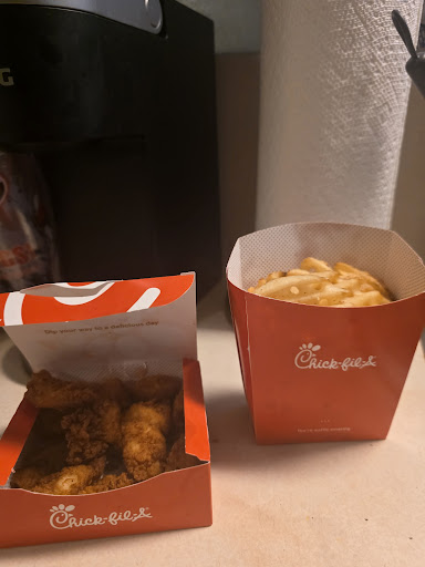Read moreI just love Chick-Fil-A. We decided to have lunch here and made another stop. Again, most Chick-Fil-A’S drive thru is always packed. Your best bet is to order inside, or use the Chick-fil-A app. Your order will be waiting when you pick it up. My server was friendly. I placed my order and paid. Again I was given my drinks and my table marker to place on the table I sat at. Before I even got to a table a nice server already had my food ready and in her hands as I was walking towards a table. She asked me where I’d like to sit. I told her and she wiped down my table and handed me my food. Great service and very efficient. Besides their delicious food, this is one of the reasons I love Chick-Fil-A. The staff is very well trained and friendly, not like Mc Donald’s. The food is consistently good, and I love all the options they offer. Again, I ordered The Chick-Fil-A Deluxe Meal. I had a choice of three cheeses American, Colby Jack, or Pepper Jack Cheese. I chose Colby Jack. It came with Lettuce, and Tomato, Waffle Fries, and a drink. I got Sweet Tea because I’m in the South. I also ordered their 4pc Chicken Strips which are so delicious especially when you use their dipping sauces. There was plenty of free parking. The decor was lovely and decorated a little different in each area. I would definitely...