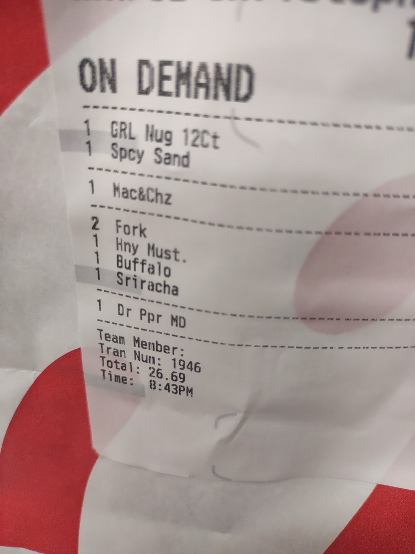 Ā Ā Ā Read moreWe went through the drive-through and placed a large order it and thought they had put a receipt in our bag so that we could add the points to our account when we got home. Only to find out there was no receipt so we tried to call the restaurant to inform them that we would like to have a receipt so we could add the points to our Chick-fil-A account when we called on the phone no one would answer, and they recommended that we call headquarters. So we called headquarters and told them what happened and they said that they would put in a message to the restaurant. It has now been 2 to 3 weeks and we have yet to hear from this restaurant. Also we have been in that restaurant, one other time while we were waiting to hear from them, and I mentioned to a management person while we were there that we had done this and that we were waiting on someone to call us. They said that they normally send an email. I have checked my email and nothing has been sent and itās been 2 to 3 weeks. This restaurant really sucks when it comes to customer service. They do not call their customers they do not send emails they donāt do anything and sometimes their food is hipness. I am very disappointed and Iām very bothered by the fact of how they act I donāt know how they stay in business and I am probably not going to be going back there and I donāt recommend than anyone else...