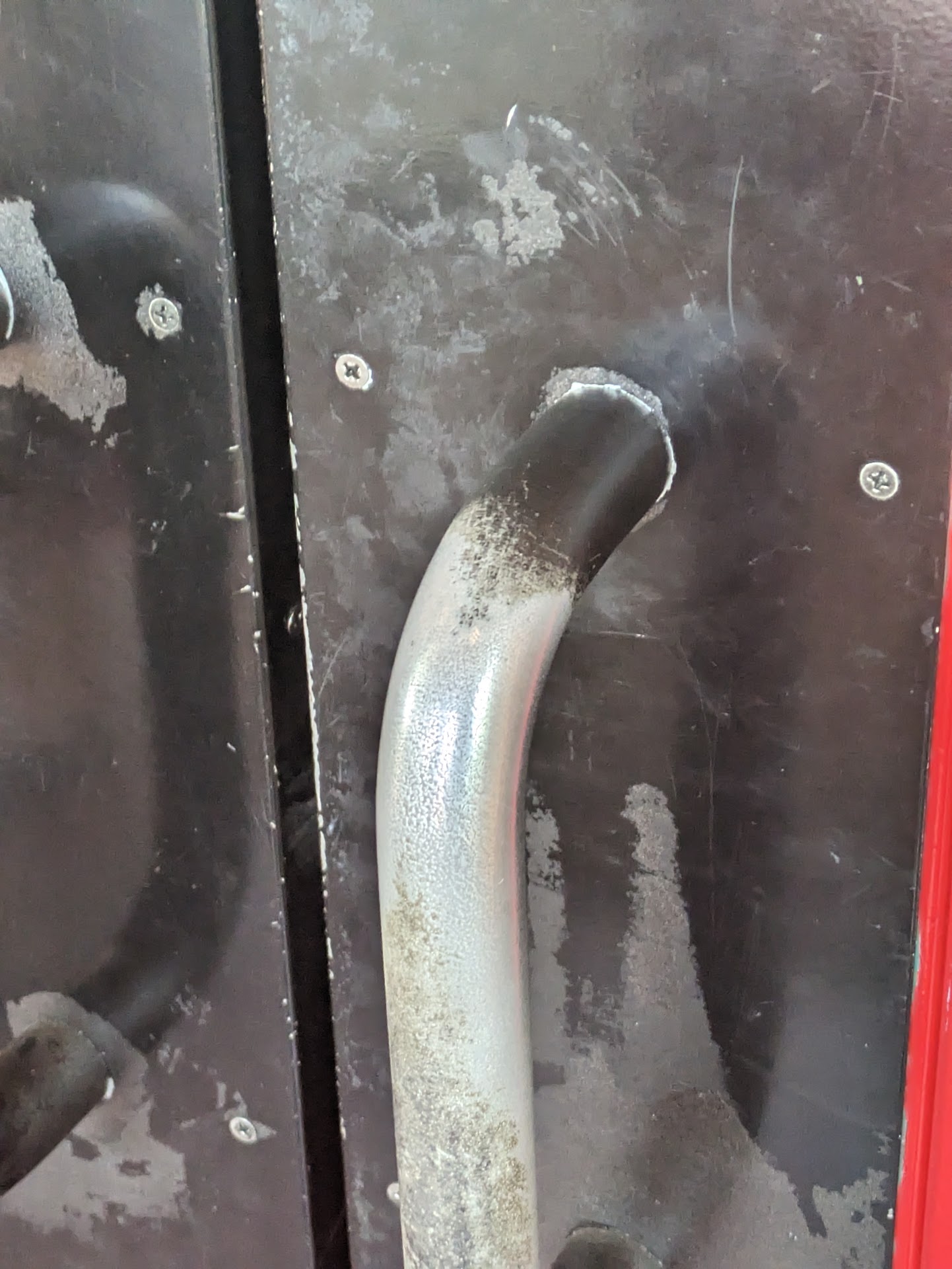 The entry door handle of this location is extremely warm with paint flaking off the windows or the entry doors were covered in filth. Not welcoming at all. Shows complete lack of cleanliness.