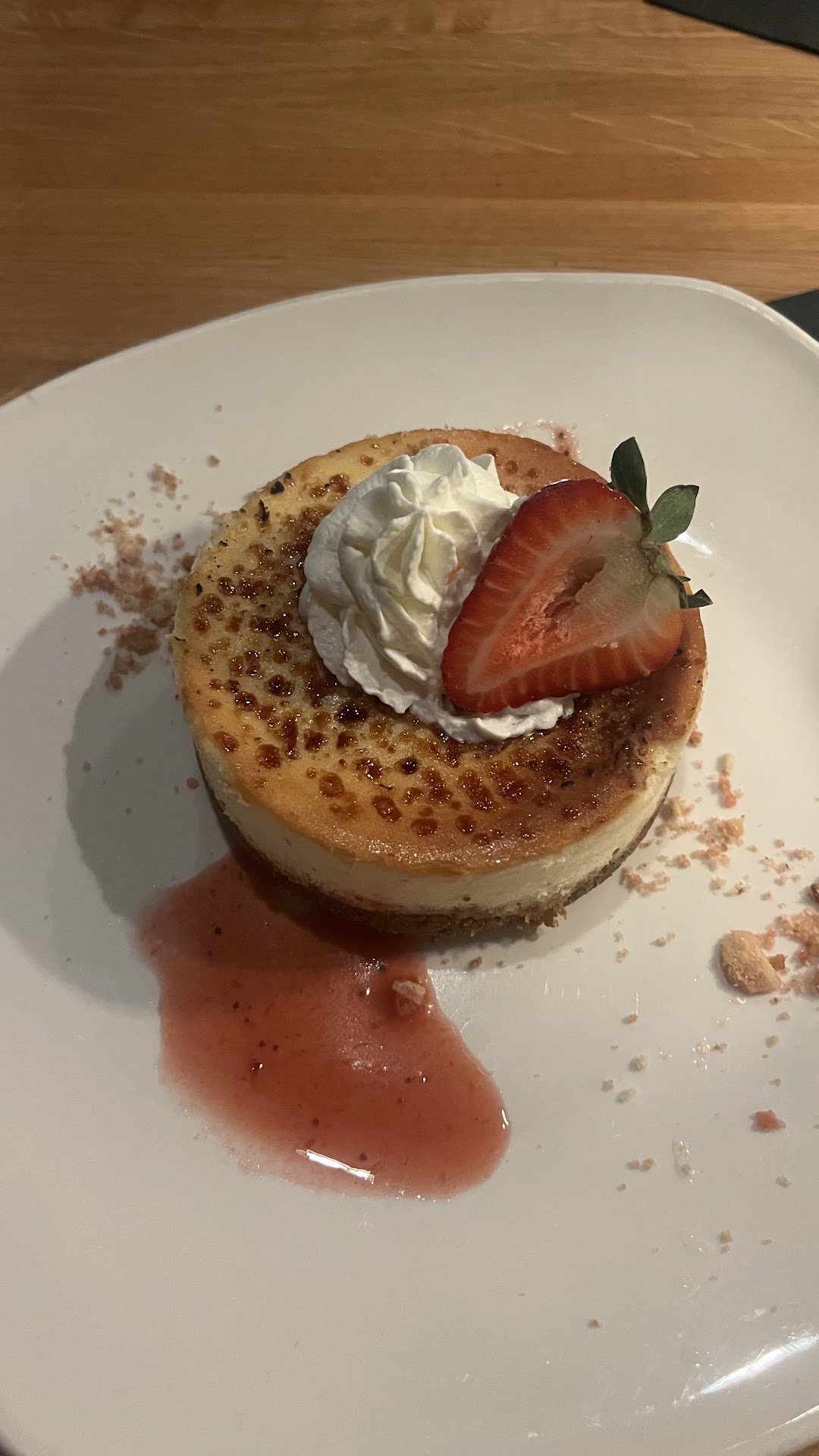 Read moreLet me begin by saying that there are two things about this review that I am not going to let hinder my take on things. One being that this establishment is owned by my company, and two being that our meal was paid for as a gift for our anniversary. That being said, here goes: It was our 20th wedding anniversary and I wanted to take my wife to a place we have not been to before. We've wanted to try Ruth's Chris for sometime, and this is where I was intending to go even though it would have been quite costly and we would have to budget for it. Then I thought about Chophouse 13. This restaurant is owned by my company and I knew they offered a discount for employees there. We could likely afford this place a bit more with the 10% off. I then find out that our evening was paid for in full as an anniversary gift from some nice people. We had a 7:00 reservation, but arrived a bit early. We were promptly seated immediately. Ice water was provided and some freshly baked rolls. We then order our drinks, Robin has a coke and I stick with the water, but order an "Old-Fashioned" which was excellent. We then order a shrimp cocktail as an appetizer. It was good and fresh, but no particularly unique qualities about it. It's shrimp served cold with some cocktail sauce, which I suspect was made in house. My wife ordered a trio of filet minion, shrimp and scallops, which along with my meal, is pictured. She loved it and kept mentioning how tender her steak was. She is no fan of scallops, I ate those. They were huge, and this can sometimes be suspect as some restaurants will try and pass some "stingray" or something as scallops, but these seemed legit and tasted amazing. For MY meal, I went with a special that the waiter "Taylor" recommended. It contained three small portions of different versions of filet minion. The first covered in herbs, the second soaked in worcestershire sauce (tasted like the best beef-jerky ever, only super tender) and the third was topped with blue cheese sauce. All were amazing, and I don't think I had a favorite. The side we chose (served family style, and not included with the entree's) was potatoes a gratin. Also pictured, it was cooked perfectly, oozing in cheeses and garnished with scallions. Unfortunately, this dish missed the mark a bit. It was too salty. I have to make the assumption that this was an anomaly, or perhaps there was some miscommunication with the cooking staff, because any chef "worth his salt" would not have created a dish this salty. Salt is an ingredient intended to bring life to the flavor of something, but not be the dominant flavoring. If I had been paying for this dish, I would have sent it back. Any saltier, and it would have been completely inedible. Now, the desert! Cheesecake. I believe it was New York style as it was a baked type. It was the best cheesecake I have ever had. We ordered it with the topping on the side, and I am glad, as the cheesecake itself needed nothing. Served with freshly-made whipped cream and fruit on the side as well. Just...