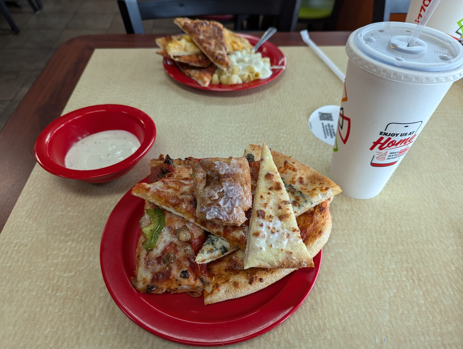 Read moreCici's isn't your neighborhood NY style slice. They aren't trying to be. What it IS, is a pizza buffet. Flavors like buffalo chicken, veggie, Hawaiian, and spinach, among others, are standard, as are cheese, and pepperoni. Want something else? They can do it for you. There's a salad bar. Not fancy, but quite a decent array, considering the price. Soup and pasta are also at the bar. Now, for dessert... cinnamon rolls (grab them when you see them. They go FAST! ), an apple pie and custardy type dessert pizza. (Trust me, they are delicious.) And, don't forget the moist, fudgy brownies! Plenty of seating here. Very family friendly atmosphere. The TVs have Disney and Nickelodeon playing. Another, has sports for the guys. Into arcade games? Have a visit to the game room. The staff has been pleasant each time we've been in here, and they are always cleaning and wiping. Very affordable and flavors for just about anyone's taste. We go once or...