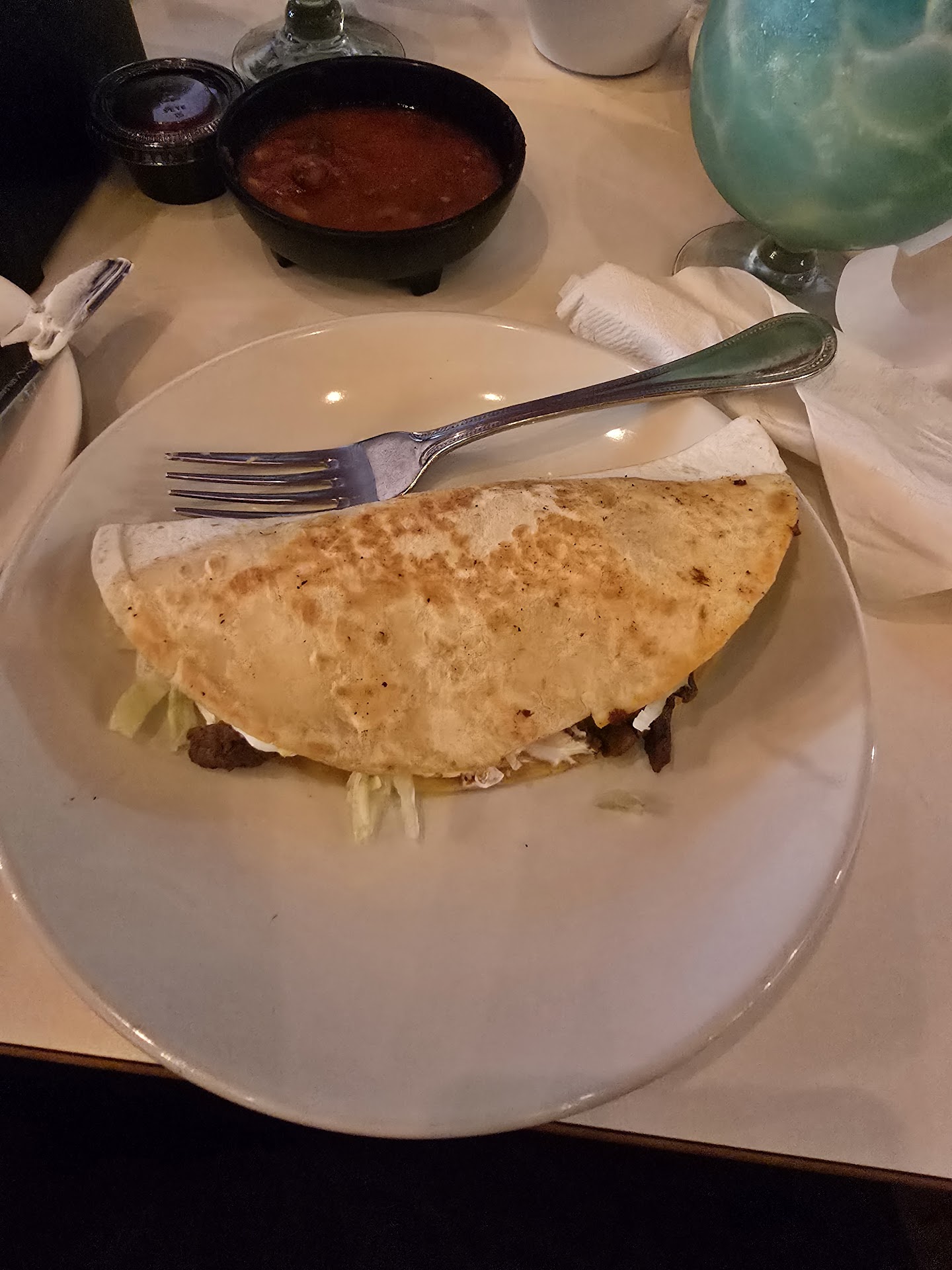 Now to the food. After the drinks were drought out it took 23 minutes for them to come back to take our orders. We had 2. Qusadeilias (1chicken/1steak) - 0 out of 10... they tasted the same and it was nothing more than a Large Taco. 1. Steak tacos - they were actually street taco size) and they were horrible. 1 kids burrito, disgusting. My niece who's used to eating burritos and loves them bot into hers and spit it out. The other items order that were semi decent were 2 kids pizzas with fries, and 3 Chimicungs.