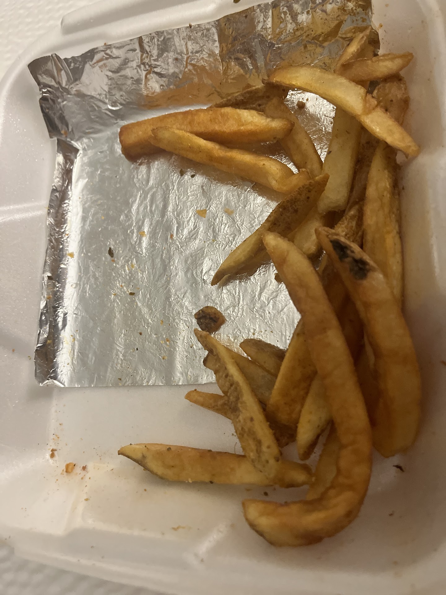 Read moreFirst time at this location. I went in the drive through. Ordered a burger tray and I asked for double fries. I went around in a parking spot to check my order and seen that I received barely a half of a handful of fries. My husbands tray was missing Cajun seasoning and he asked for BBQ and didn’t get it. I went RIGHT back in there not 1-2 minutes later and said this is not double fries and my husband asked for Cajun on his. The lady that made the tray tried to argue with me saying that she put more in there. Basically accusing me of eating the fries or something? I dont know but that’s how I took it!! I said I was parked and checked my food just a minute ago? She’s swearing up and down she put more than that. I know I am not the skinniest person , but that is really insulting to basically accuse me saying I did something. Over a what like $2 small fry?? I’m not that broke! I spent $30 on our meals I expect them to be made right. Didn’t catch the lady’s name , but she works in the back I’m guessing as a cook considering she said she made my tray. Extremely rude. Picture for example of what I got in my tray as...